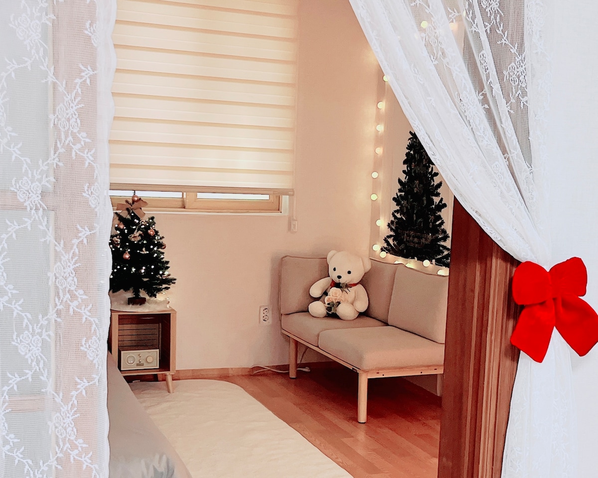 【Eunhasu D&M】【Chanran D&M】高层/豪华民宿床上用品/新房/3分钟到达Yooseong温泉站/3号房(All床)
