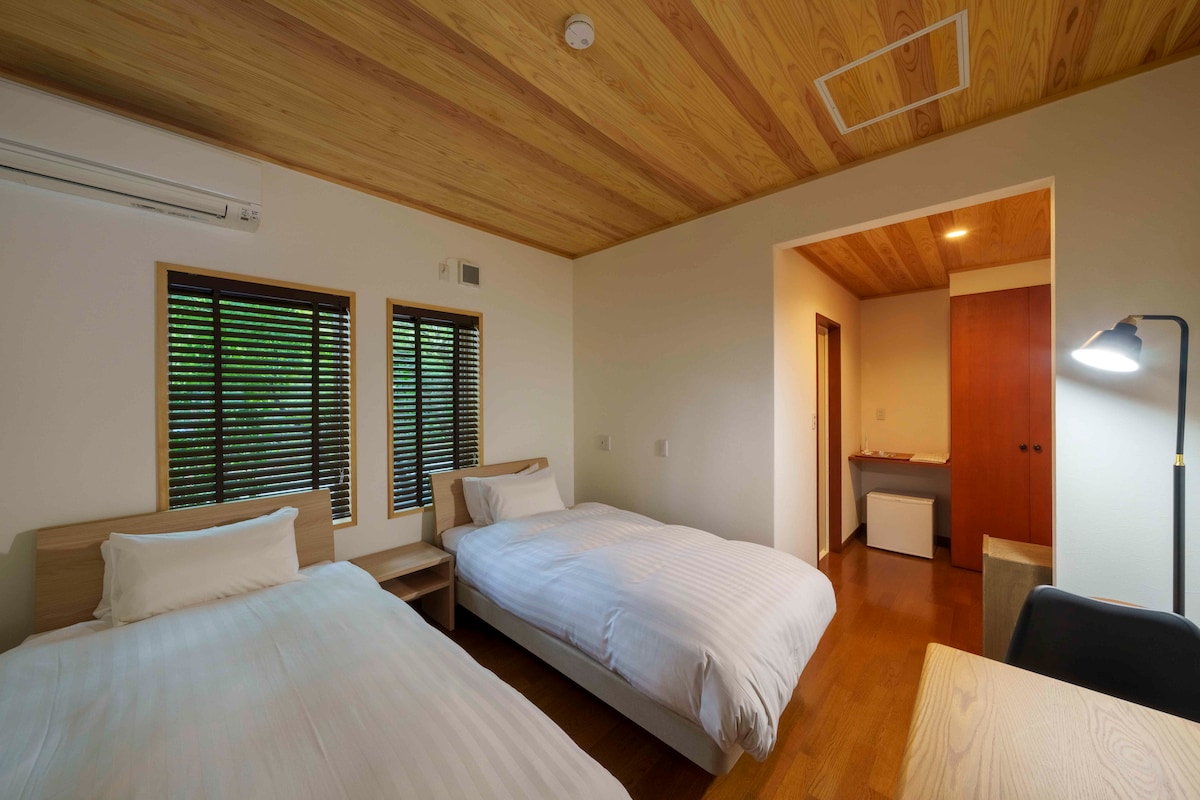 こちらの宿泊先のかわいらしさには、きっと心を奪われるはず。都心から離れた群馬県片品村にある静かな宿泊施設です。 こちらの洋室はリバービューで、窓を開けると川のせせらぎがBGMのように流れ、夜は自然の音に包まれてお休みいただけます。 【お部屋について】 ・洋室(ベッド2台またはダブルベッド1台) ・川に面した窓あり(自然の白い音が聞こえます) ・Wi-Fi完備 【施設について】 ・敷地内に無料駐車場あり ・共用キッチン、電子レンジ、冷蔵庫あり ・シャワー24時間利用可能/お風呂:19:00〜23:00 ・朝食サービス(7:30〜9:30) ・浴衣貸出あり 【周辺環境】 ・標高900mの高原地帯、夏でも涼しく快適 ・丸沼高原スキー場、尾瀬ハイキング、SUP体験スポット(菅沼)へのアクセス良好 ・車で奥日光、中禅寺湖、日光東照宮へも日帰り可能
