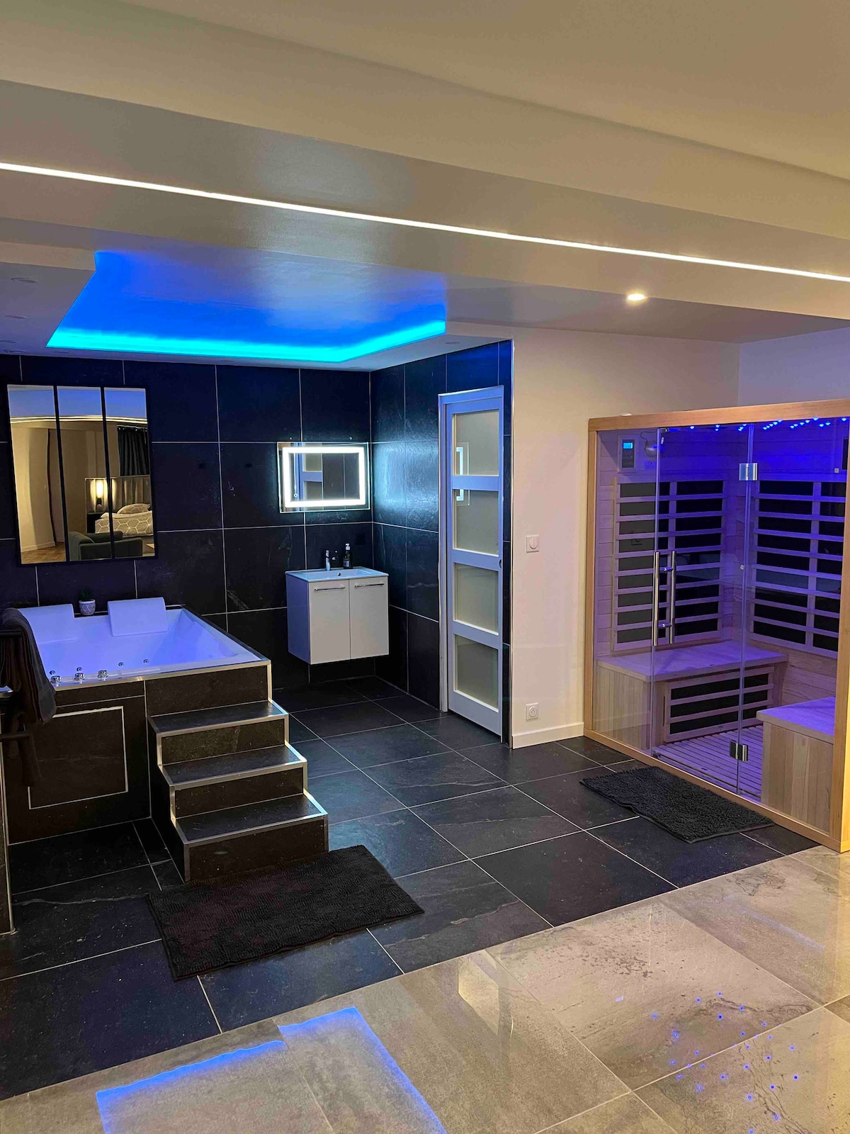 Nous vous invitons à vous retrouver dans ce gîte de 47m2 à l’ambiance sophistiquée et moderne. Destiné aux amoureux, notre gite Love vous plonge dans une ambiance sensuelle et romantique ou tout est dédiée à l’éveil de vos sens. Il comprend une chambre en mezzanine avec son lit (King-size,180/200), une salle de bain avec une baignoire balnéothérapie 2 places, un salon salle à manger, une cuisine entièrement équipée. 4 voyageurs autorisés (2 adultes, 2 enfants)