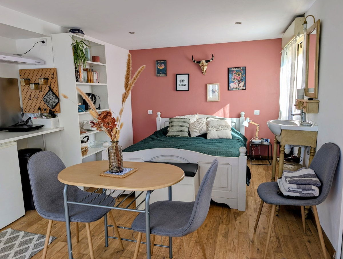 Découvrez cette charmante maison taillée dans la falaise, parfaite pour un séjour à deux : - Chambre avec lit king-size, bain à remous éclairé à la bougie, télévision orientable, douche italienne. - Deux salons avec TV, cuisine suréquipée, poêle à granulés, divertissements : Netflix, PlayStation 5, Switch, fléchettes… - Une terrasse avec salon de jardin. - Un espace bureau avec double écrans et dressing. Un lieu calme, chaleureux et atypique, entre charme rustique et confort moderne.