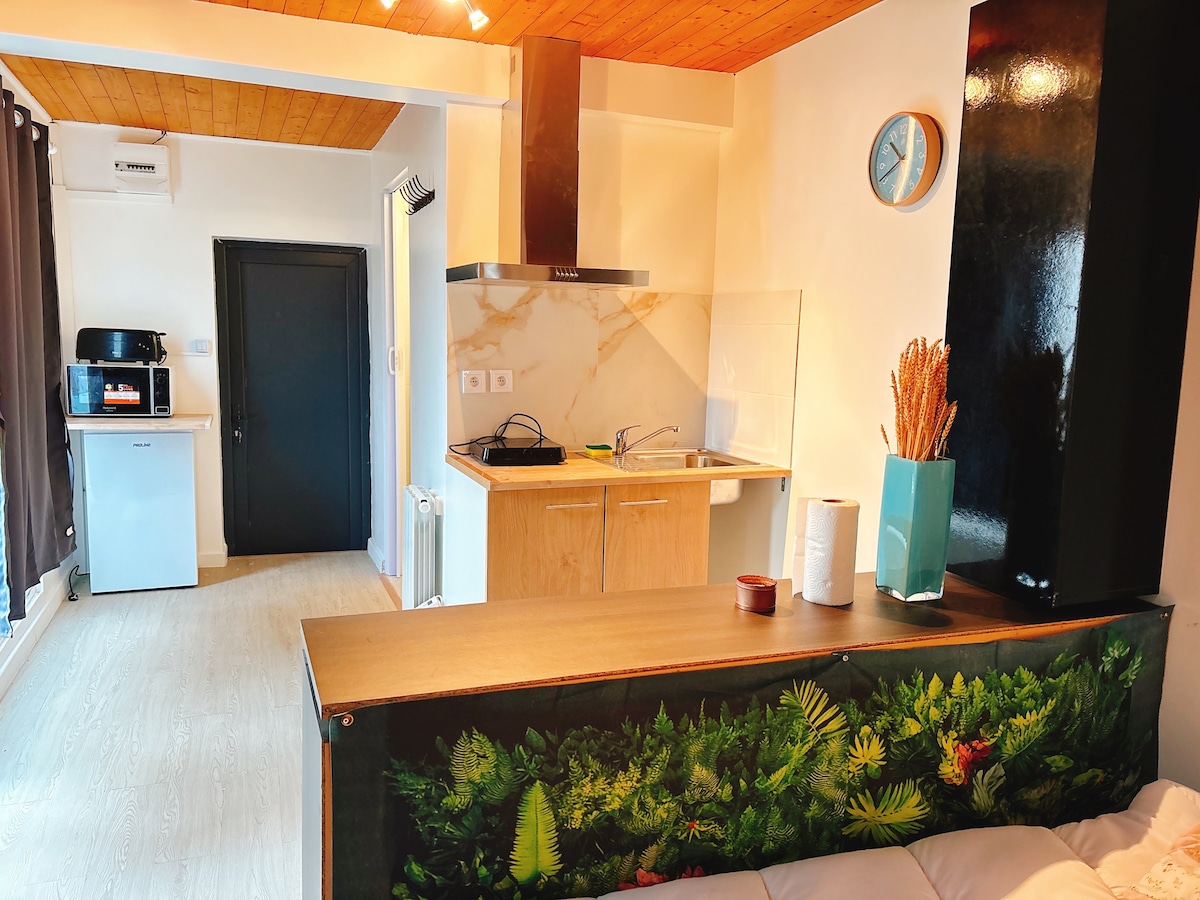 Independent 22 m² studio in a charming house, nestled in a quiet private lane in the heart of Versailles. Ground-level access via a terrace. Large queen-size bed, electric shutters, underfloor heating, modern bathroom with walk-in shower and towel warmer. Equipped kitchenette (microwave, fridge, coffee maker). Fiber Wi-Fi and free parking in front of the house. Perfect for a peaceful and comfortable stay for two.