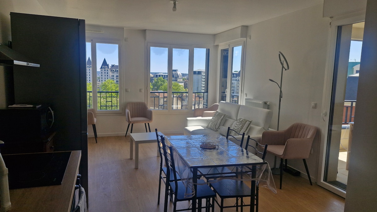 Bienvenue dans ce bel appartement de plain pied avec terrasse, idéalement situé en plein centre ville de Chartres, à proximité de la gare et de la célèbre cathédrale. L'appartement dispose de tous les éléments essentiels pour rendre votre séjour pratique et agréable. Réel avantage : une place de parking (sécurisée) située dans un parking souterrain tout proche du logement est mise gratuitement à votre disposition, pendant toute la durée de votre séjour. Au plaisir de vous accueillir !