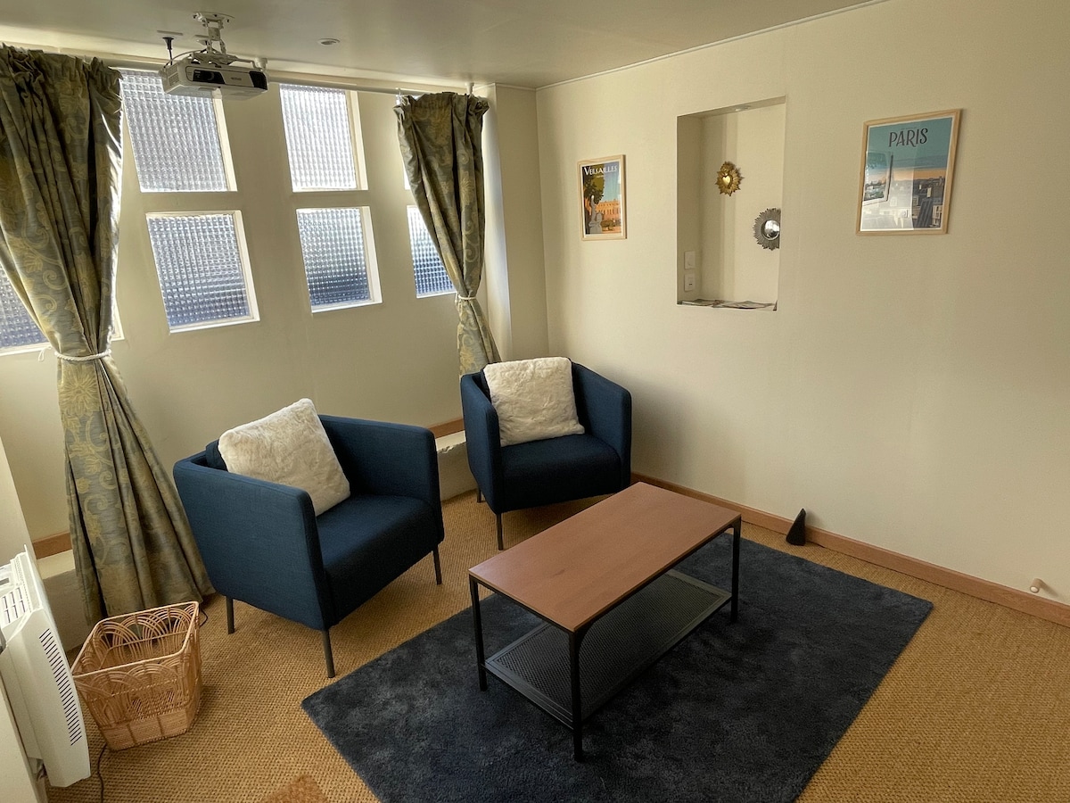 Independent studio located in basement of our house, with air vent, heating, and 2,2m from floor to ceiling. Bright, calm, independent access through our garage. CentralSupelec and ENS schools reachable by foot. 2 beds size 80x200cm, separated or joined. Bed sheets are provided. Bathroom with toilettes and bathtube, separated from rest of studio via a folding screen. Small kitchen with micro-waves, fridge, electric stove. This appartment is also proposed on homeechange.