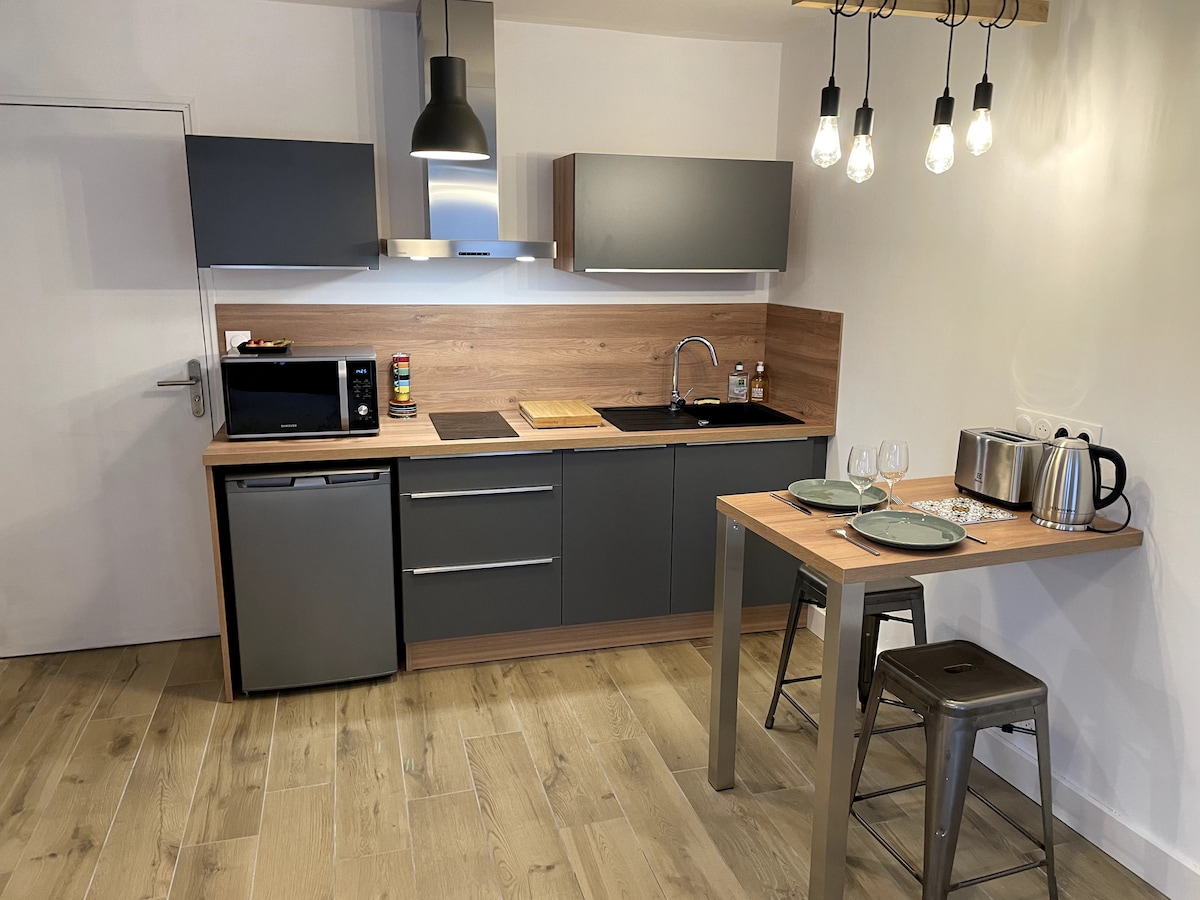 Studio de plain-pied de 35 M² en parfait état, entièrement indépendant, aménagé dans une ancienne fermette. Grande salle en mezzanine avec 1 lit de haute qualité, pour 2 personnes. Un coin cuisine, four, micro-onde, frigo, ... Une salle d'eau et wc. A l'étage, une chambre avec un lit 2 personnes sous comble. Le chauffage est alimenté par une PAC. Environnement, très calme et agréable. Commerce à 3km mais supérette autonome. Idéal pour un séjour touristique ou pour un déplacement professionnel