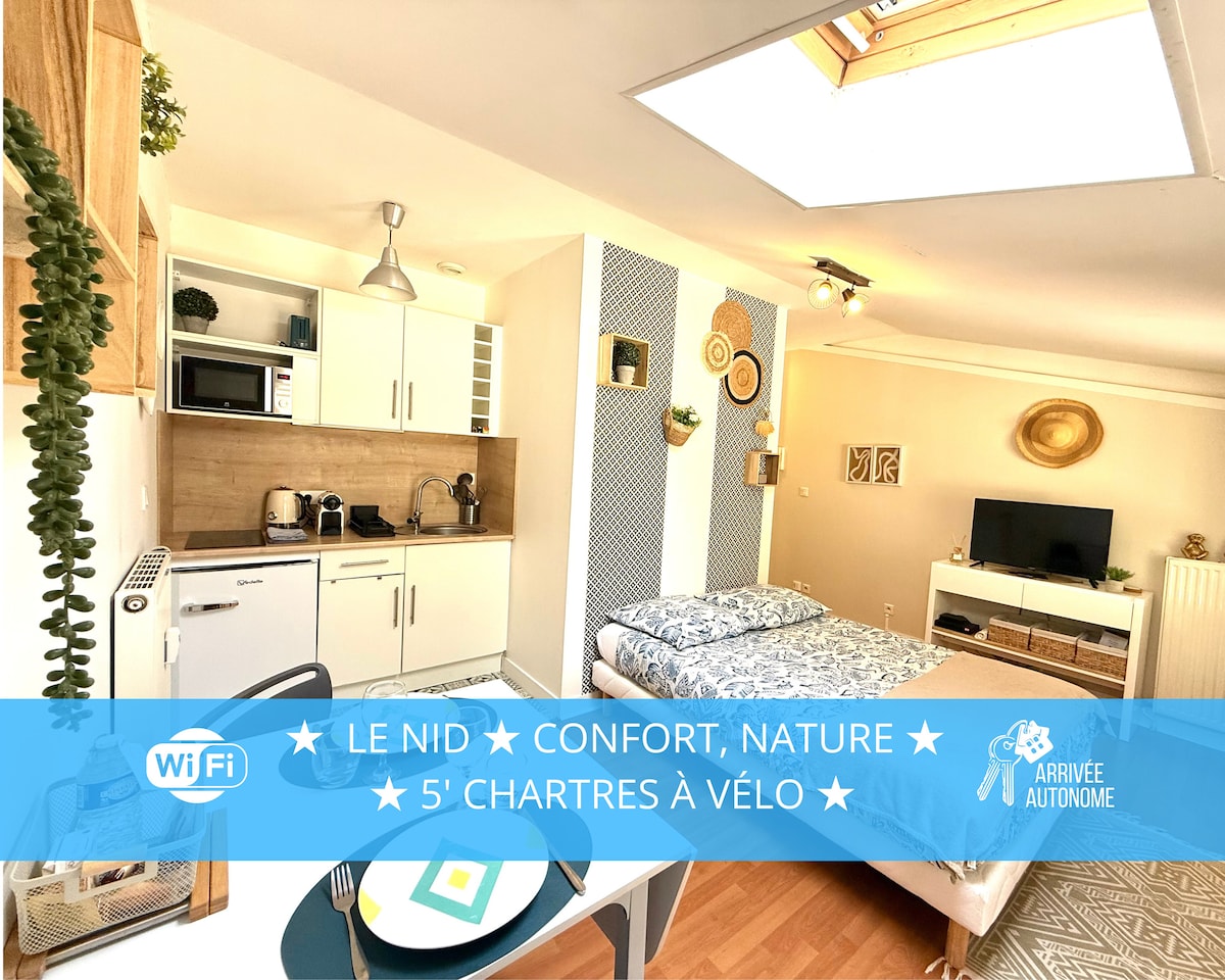 LE NID : élégant appartement, idéal pour des vacances reposantes ou un séjour professionnel en toute quiétude ! Lors de votre séjour au NID, vous profiterez... ★ d'être à 50m du plan vert ★ d’être à 5 min du centre de Chartres, ★ d’un accès à l’A11 en 10 min ★ d’une place de parking réservée ★ du ménage de fin de séjour ★ d'un linge de maison fourni ★ d'un accès WIFI fibre Profitez de l’agglomération chartraine dans les meilleures conditions. A très vite ! Audrey & Julien, vos hôtes