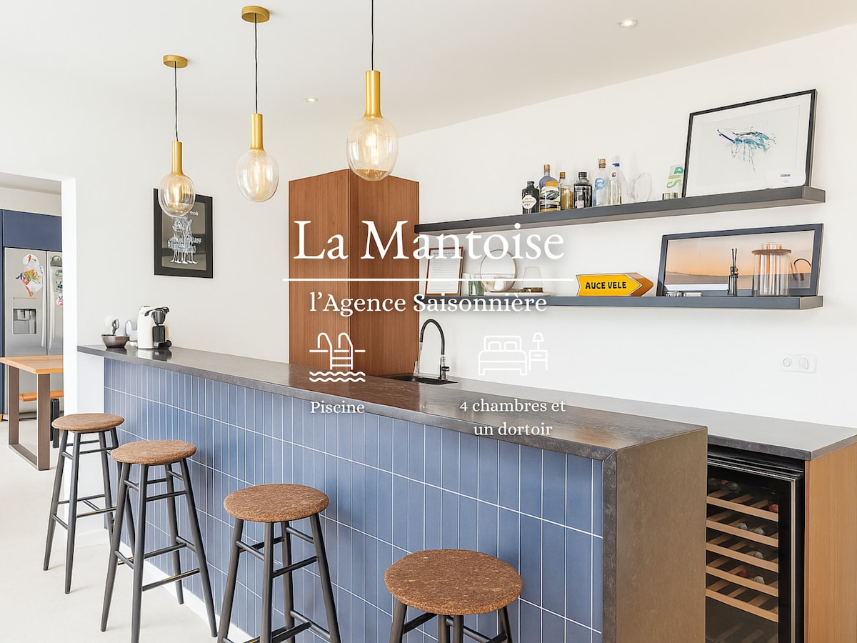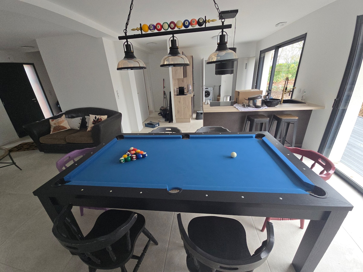 Villa 300 M² privative sans vis à vis. RDC : piscine intérieure chauffée à l'année (29°/9x4 mètres, chaises longues, jeux eau), cuisine américaine entièrement équipée, 2 chambres, salle de douche + douche à l'italienne, wc séparé, buanderie. 1er étage : salon (TV connectée), espace sport/coin nuit (tapis course, rameur, vélo, canapé lit tout confort). Extérieur : terrasse 120 M² sans vis à vis (mobilier jardin, barbecue gaz, table ping pong) + jardin (terrain pétanque, trampoline, balançoire).