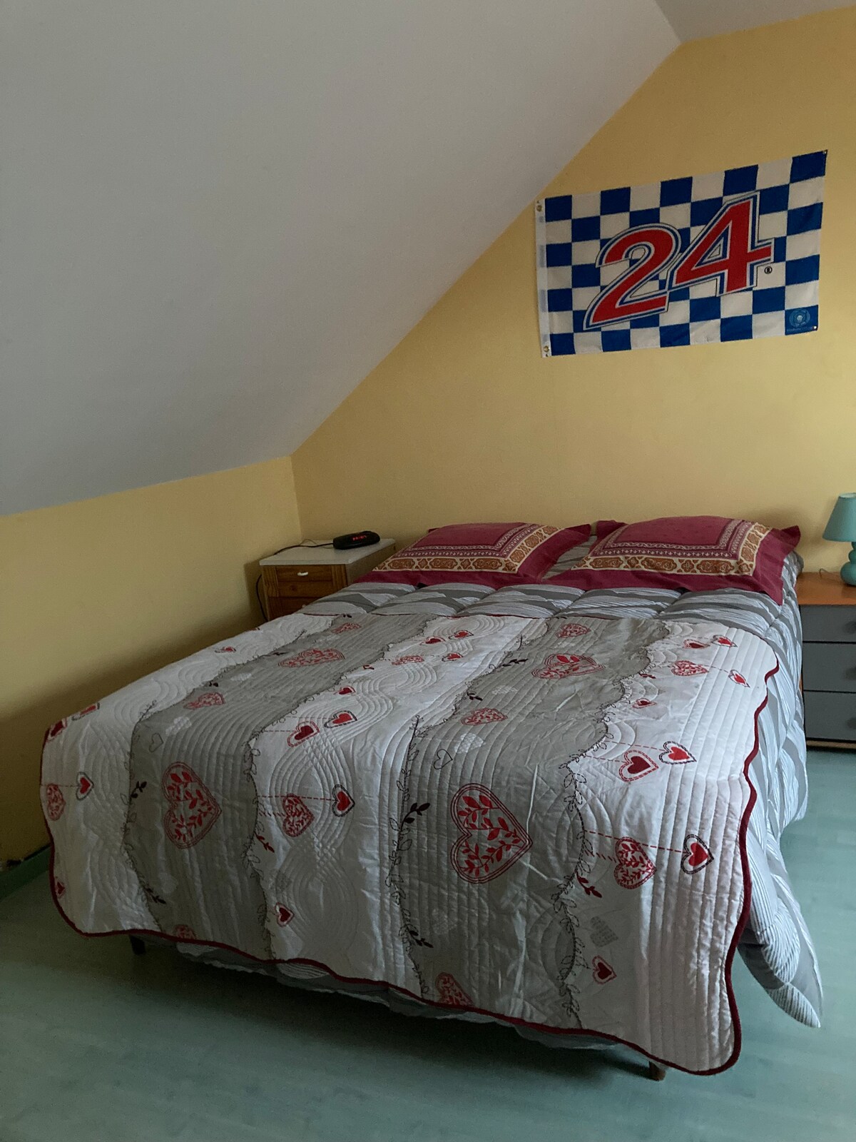 a 2.7 km de la sortie de l autoroute le mans nord tous commerces a proximité ( zone commerciale) terrasse et mobilier de jardin grand parking , boite à clé pour arrivée tardive .. rez de chaussée pièce de vie 40 M2 comprenant cuisine aménagée ( bouilloire cafetière) TV wifi A l’étage sdd et chambre 30 M2 literie neuve 160 lit parapluie + matelas au sol et canapé convertible avec matelas 140 type chauffeuse pour des enfants (serviettes, draps fournis) non fumeur animaux non autorisés
