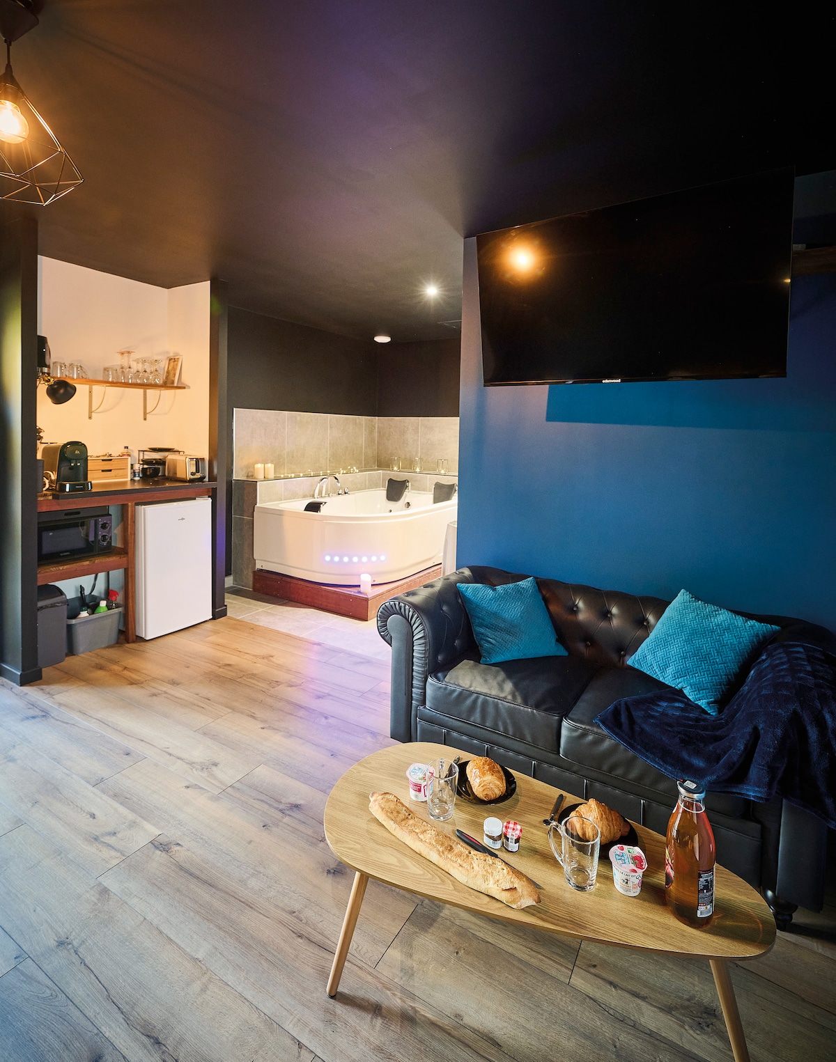 Envie d’une parenthèse à deux, loin du quotidien ? Découvrez la Love Room de la Grange de Clyna 🌿 : une chambre de 25m² avec lit king size et verrière sur piscine intérieure, jacuzzi privatif, cuisine équipée, salon cocooning et terrasse en pleine nature. Le tout dans une atmosphère intimiste et romantique. Petit-déjeuner inclus, options dîner disponibles. Réservez votre bulle d’évasion 💞✨