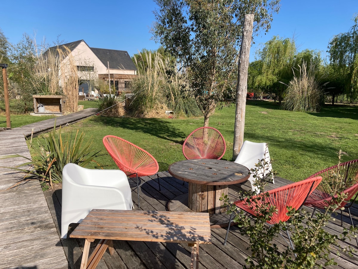 Niché au cœur des vergers sarthois, venez vous relaxer le temps d'un instant au sein de cette Sacrée cabane ! Notre Tiny house a été entièrement pensée pour que vous passiez un vrai moment d'évasion en amoureux, entre amis ou bien en famille. Que ce soit en admirant le coucher du soleil ou les étoiles dans le bain nordique, profitez d'un moment de détente unique. Au petit matin, vous pourrez déguster votre petit-déjeuner (inclut)sur la terrasse et du "coffee corner".