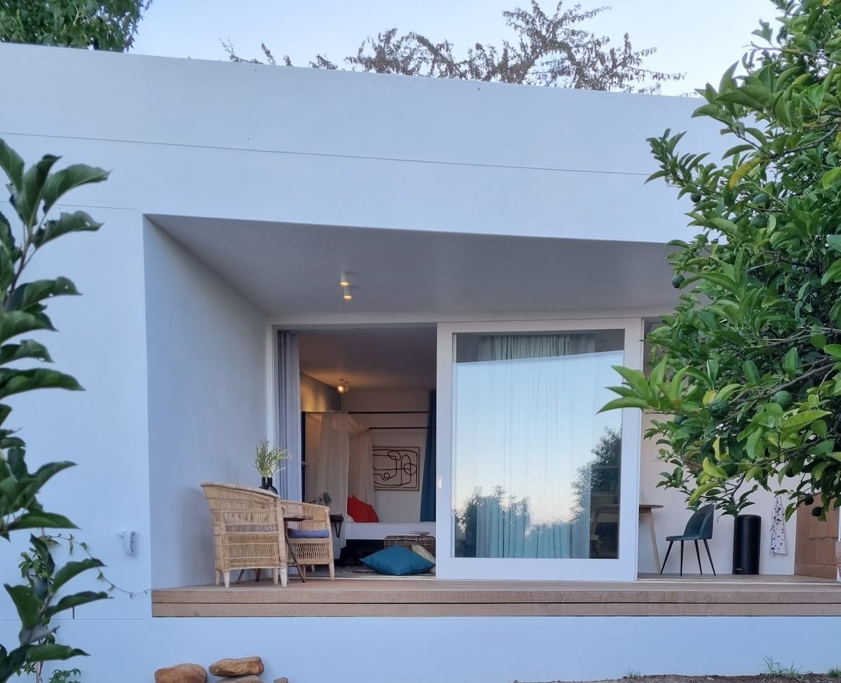 A cosy & pretty self-catering unit nestled privately at the back of the farm. This cottage has a king size bed, lounge and well-equipped kitchen with a walk-in closet. The private garden has BBQ facilities and a hanging day bed perfect for afternoon naps. There is also a splash pool. Well behaved pets are welcome. 1 pet @R100 per pet.