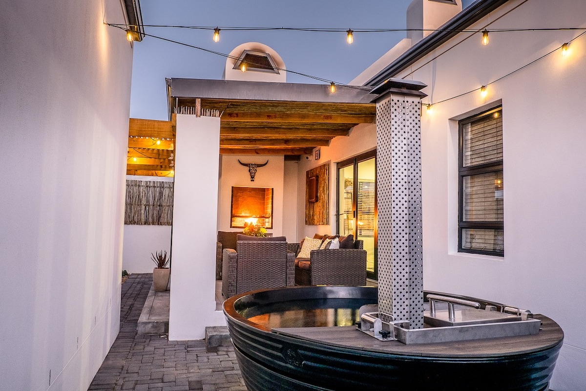Create lasting memories in this serene, air-conditioned, private haven — a peaceful retreat for relaxation and connection. Sink into plush bedding, unwind in soothing hot tubs, and gather around cozy fireplaces. Enjoy family fun with the pizza oven, under-roof braai, beside the sparkling heated pool (seasonal). Central yet away from the inner-city hustle, offering a safe, calm escape. Baby-friendly, beautifully styled, not affected by power cuts — the perfect getaway for couples or families.