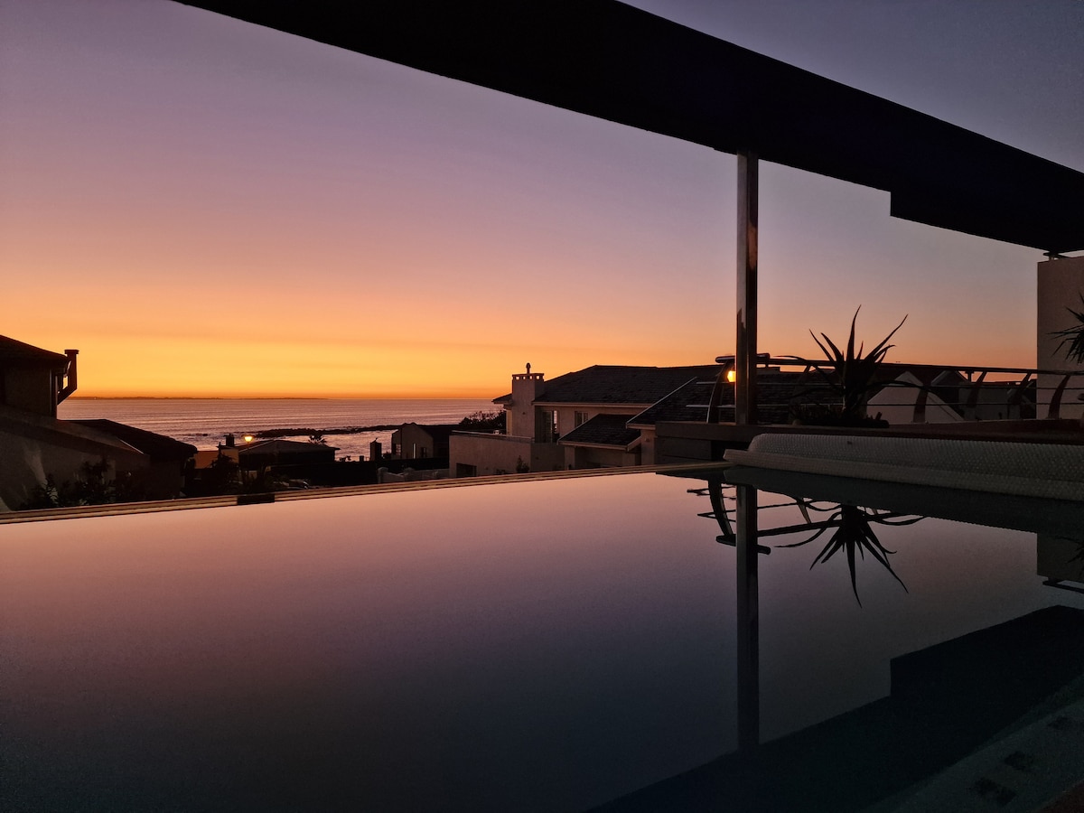 Forget your worries in this spacious and serene space. Back Up Power Battery. The Only ONE @ Briza Road is located in Bloubergrant, a short walk to the beach. The home is set in a quiet residential area which makes it perfect for a relaxing break Everything in this home is immaculate. Breathtaking artwork with a unique spacious sunken lounge. You can enjoy sunny days by the pool sipping cocktails in a resort style setting with a large swimming pool, under cover braai and wood burning hot tub.