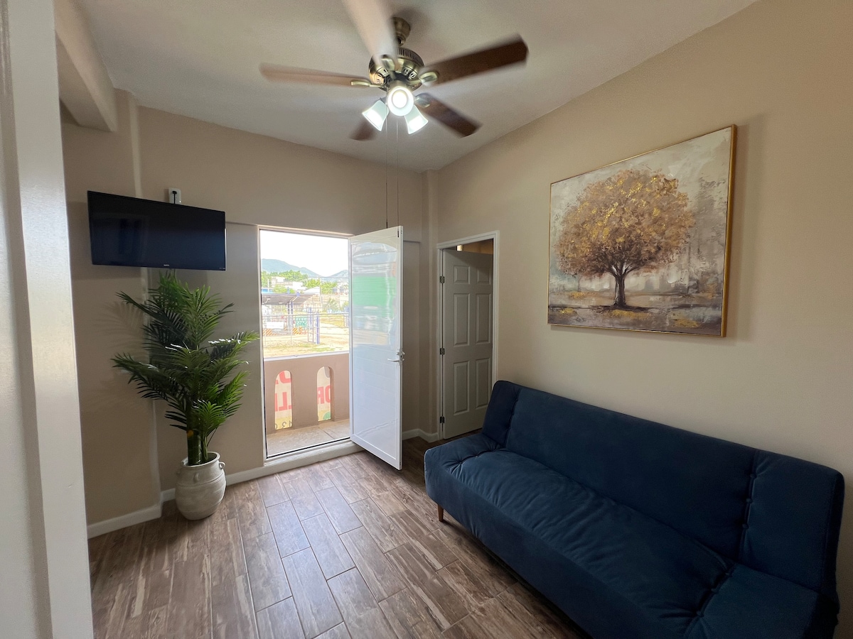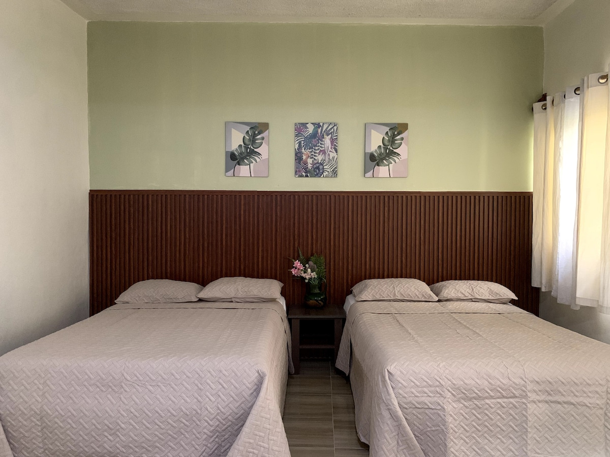 Descansa en un espacio pequeño, pero hermoso y limpio. Ideal para familias. Económico y con todo lo que necesitas.