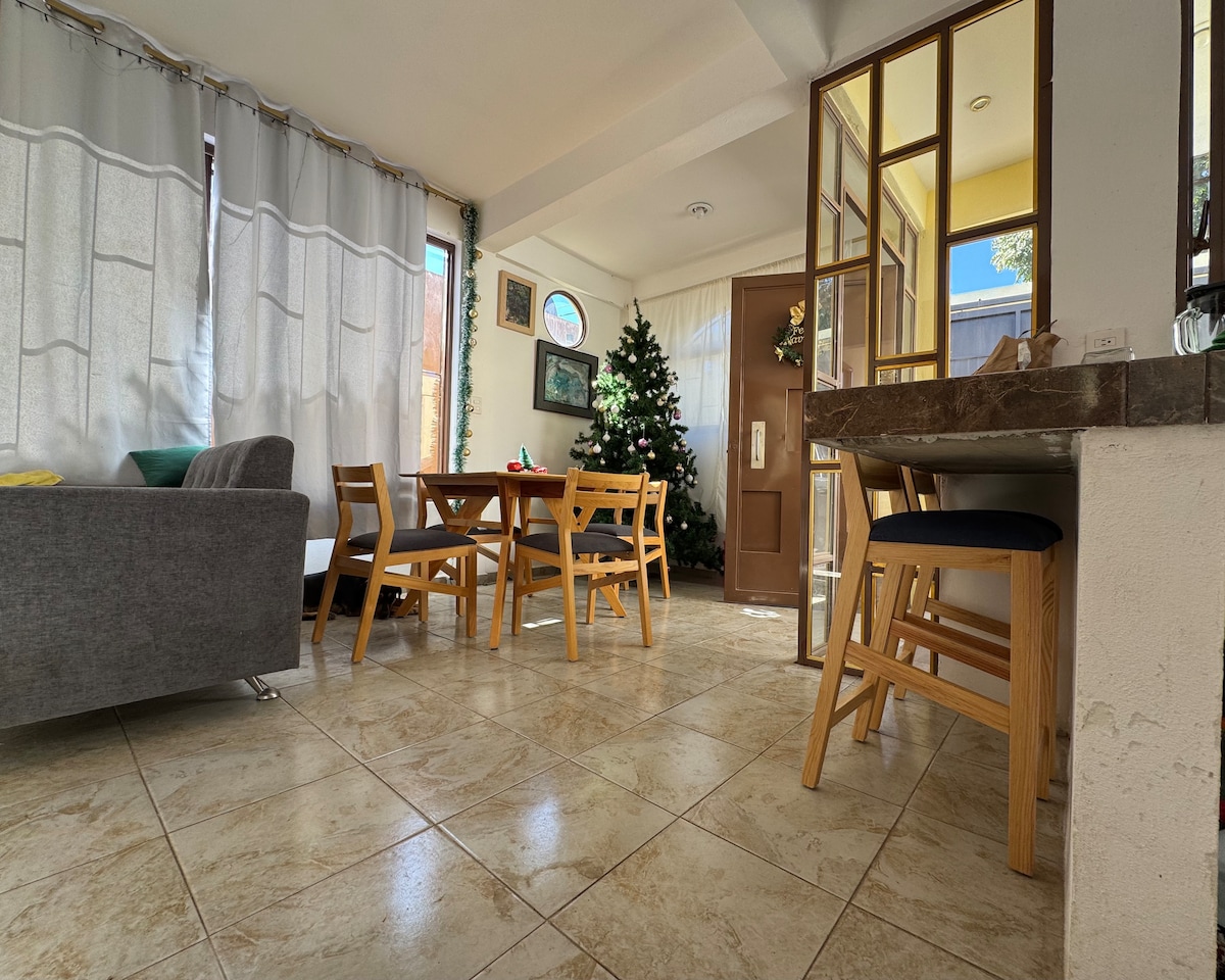A tan solo 5 minutos del aeropuerto, este espacio con terraza ofrece una experiencia única para aquellos que gustan de la tranquilidad, comodidad y de él encontrarse en contacto con la naturaleza. Ya que puedes disfrutar de un amplio jardín y apreciar una gran variedad de arboles, plantas y agaves de la región. El alojamiento cuenta con una terraza con barra (y conexiones de luz) en la que podrás realizar desde home office hasta ver algún programa o disfrutar de las vistas de la zona.