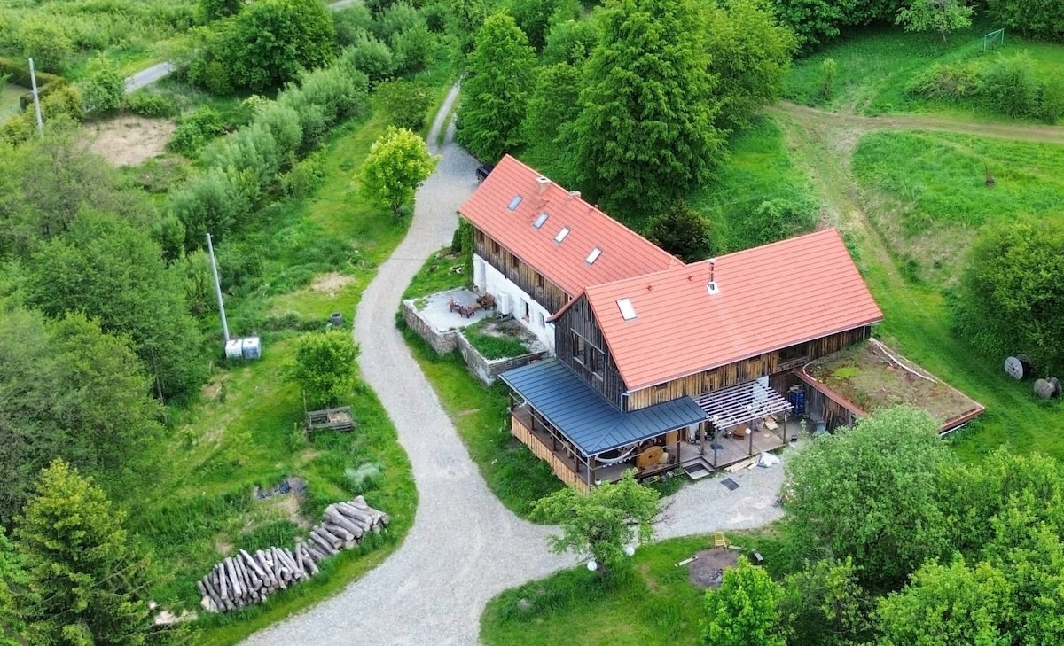 Sudeckie Bieszczady, Mityczny Dziki Zachód, Przestrzeń na TU I TERAZ. Spektakularnie położony domek, z dala od innych zabudowań, wykonany z ekologicznych materiałów, promujący odpoczynek slow, bez nadmiernego elektrosmogu, TV i Wi-Fi. Tuż obok pracownia oferująca warsztaty rodzinne lub dla dzieci ( ceramika, sztuka, leśna przygoda ). Zjawiskowe zachody słońca. Domek położony na szlaku pieszym i rowerowym do Zieleńca, Lewina Kłodzkiego. Dojazd drogą polną, dość wymagający. Dedykowany rodzinom.