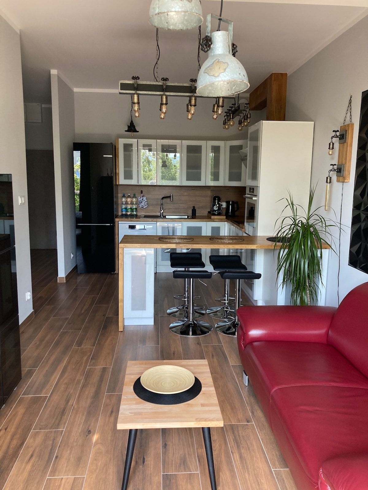 Najlepszy w Kłodzku, być może nawet na świecie, nowy, przestronny apartament z tarasem w sercu Kotliny Kłodzkiej, zaprojektowany dla komfortowego wypoczynku 2 osób dorosłych. Mieszkanie wykończone materiałami najwyższej jakości (drewno, ceramika, szkło), wyposażone w nowy sprzęt marki Siemens, Bosch (pralka, suszarka do ubrań, zmywarka, okap) oraz w duży 55”telewizor SMART, stałe łącze 1Gb/s (światłowód), pełny pakiet TV z 200 - HBO, HBO2…).