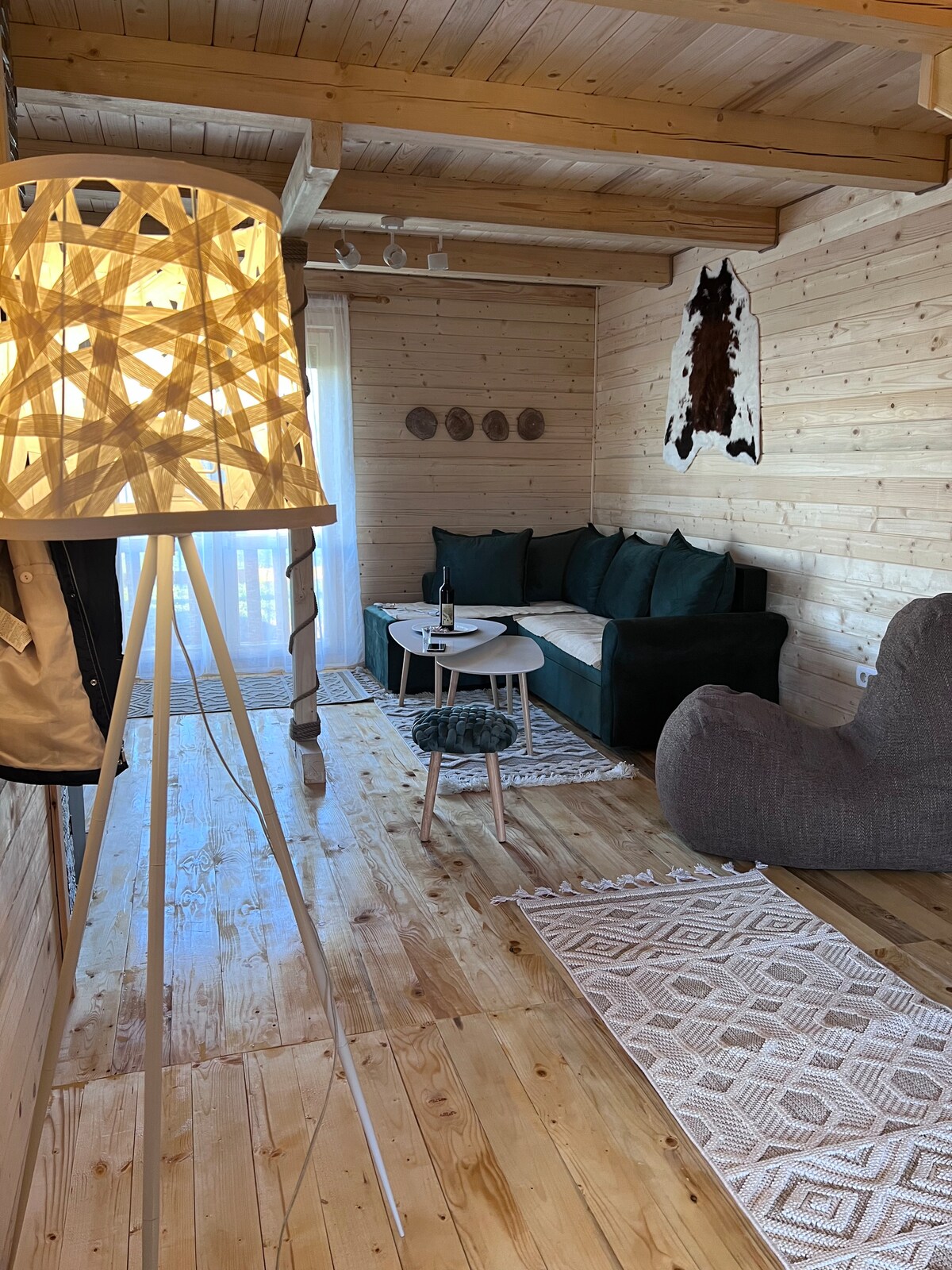 This charming weekend house is settled in breathtaking nature, it allows you to rejuvenate and reconnect with the tranquility of the surrounding landscape. Stepping inside you are welcomed into a warm and cozy living area with a fireplace as the centerpiece. The house features a fully equipped kitchen and two bedrooms with comfortable beds, cozy blankets and large windows that offer stunning view. Overall, this peaceful weekend house allows you to escape noise and stress of everyday life.