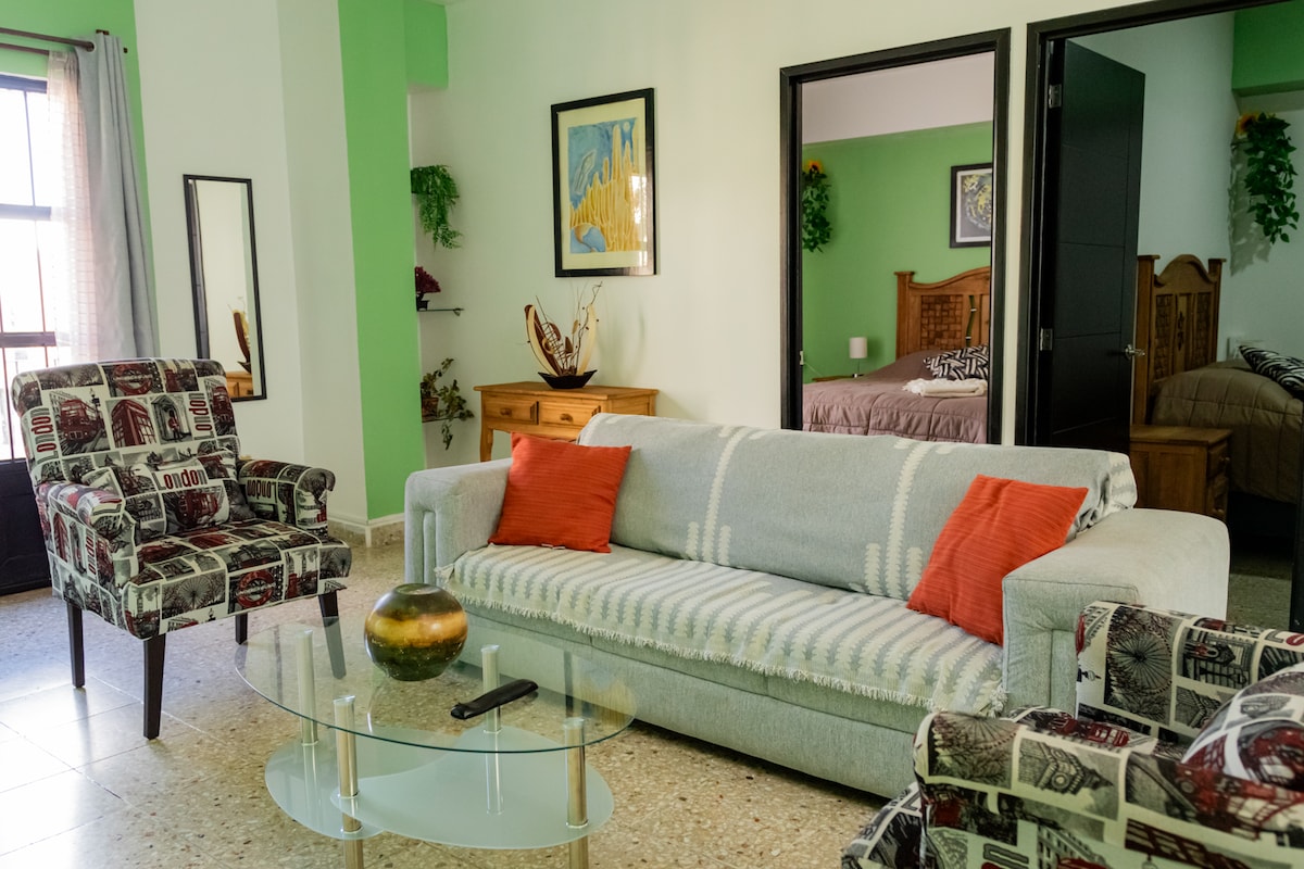 Apartamento a una cuadra de catedral en pleno centro desde aquí podrás tener acceso a los principales lugares turísticos de la ciudad puedes caminar por las principales calles del centro histórico, conocer el teatro Calderón, catedral, plaza Goitia, el mercado González Ortega, desayunar en los sitios más tradicionales o recorrer en el Turibus, además conocer la bufa o los principales callejones, salir por la noche a disfrutar de lo más bello de la ciudad su gastronomía, su magia y su encanto.