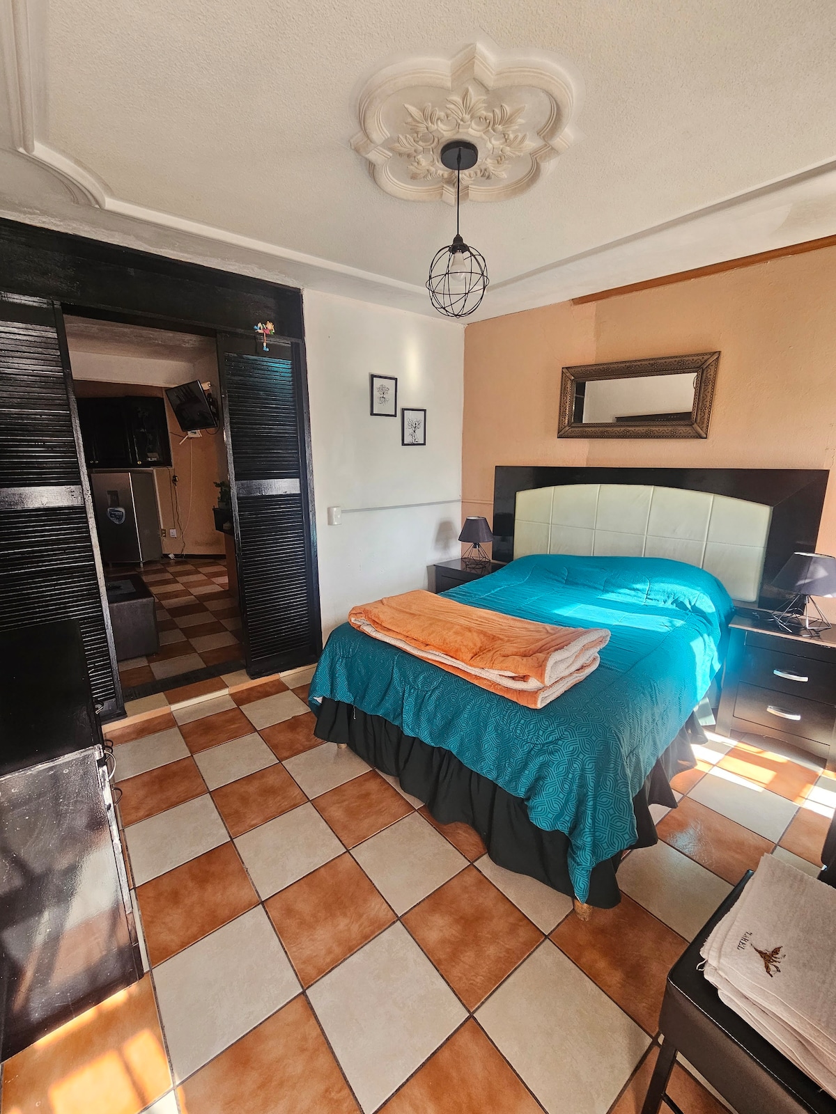 ¡En zona centro a 8 minutos a pie de bicentenario! Ubicación estratégica que te permite planear tu viaje sin calles complicadas de difícil acceso, la habitación cuenta con cocina, mini sala y zona de descanso, el edificio es compartido con 2 departamentos más, escaleras, terraza y mini gimnasio son compartidos únicamente. Tiene buenas vistas, cerca de tiendas de autoservicio, farmacia y escuelas, el vecindario es muy amable y seguro. Ven y disfruta de un espacio a medida.