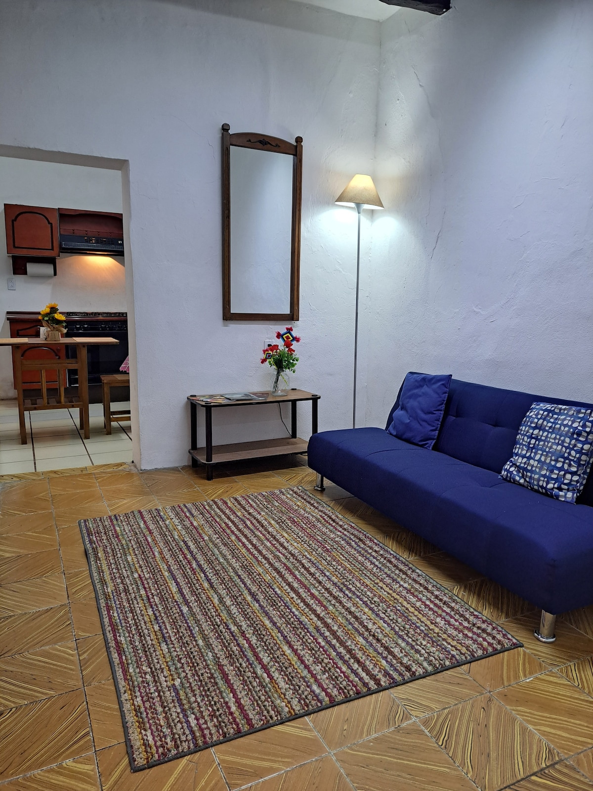 A cuadra de avenida hidalgo y Juárez Smartv 55” Netflix COCINA estufa Sartenes Cubiertos Microondas Cafetera Sal Aceite Tabla Refrigerado Agua Servilletas Baño con regadera,lavabo con tocador, secadora para cabello Y toalla de baño Recámara con cama king size con Colchon premium suave y con sofá cama matrimonial muy cómodo Almohadas y Cobijas extra a solicitud Closet