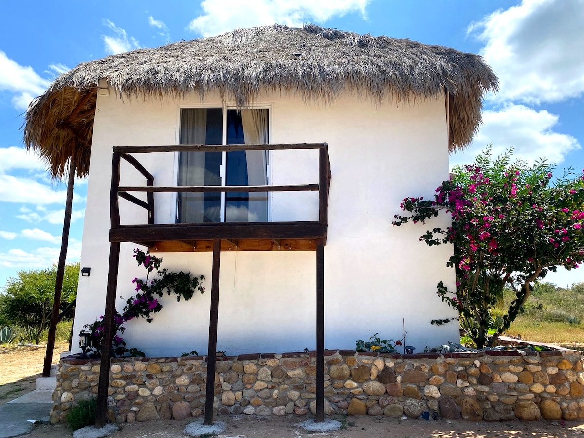 Casita Solita es una mini cabaña ecológica rodeada de naturaleza, ideal para descansar y desconectar. Disfruta jardines, aire puro y noches estrelladas junto a la fogata. Con cama cómoda y espacio acogedor, es perfecta para parejas o viajeros que buscan tranquilidad. A solo minutos de Dolores Hidalgo y San Miguel de Allende, ofrece una escapada íntima y auténtica en el campo. Vista panorámica de 140° hacia el campo guanajuatense, donde cada amanecer y cada atardecer se sienten únicos.