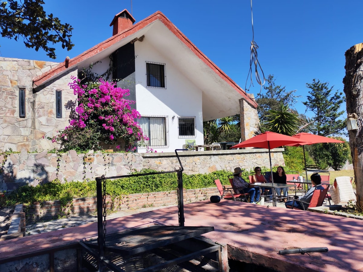 Relax in this quiet and secure getaway just 20 minutes from downtown Guanajuato city. Privacy and comfort with spectacular views of the sierra. Spacious forested property completely enclosed with BBQ, TV/Wifi, 3 min walk from pueblo with restaurants and stores selling local handcrafts/products. For groups up to 8 people, rent together with Casita la Ranita next door (gate can be opened between properties). Dogs welcome.