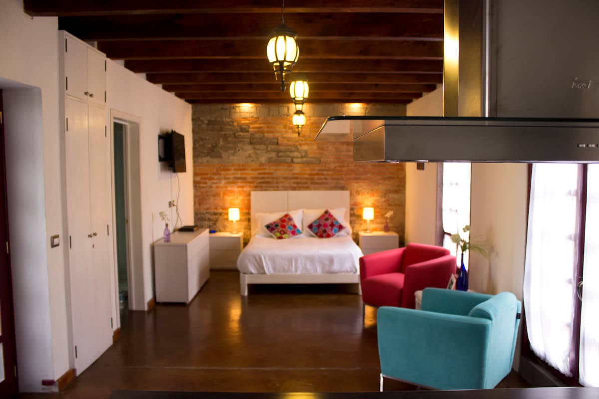 Disfruta de una cómoda estancia en nuestro loft Chavela Vargas, contemplando desde sus terrazas las hermosas vistas nocturnas hacia el centro histórico de la hermosa ciudad patrimonio cultural de la humanidad, con una excelente ubicacion para conocer a pie los principales atractivos turisticosdel centro historico como catedral museos, plazas y callejones