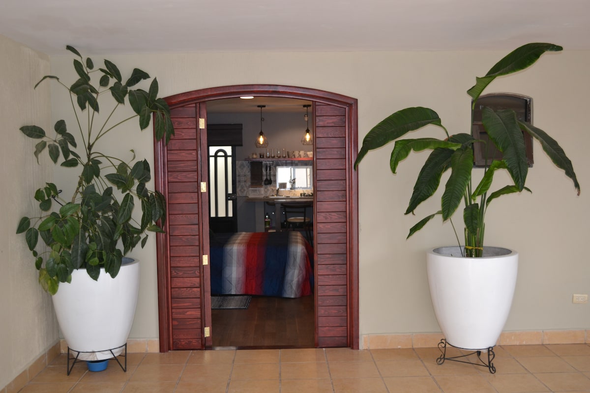 HERMOSO DEPARTAMENTO, AMPLIO, COMODO, SIN ESCALERAS. SOLO PARA AUTOS MEDIANOS. GRAN CLASE Y ESTILO TOTALMENTE EQUIPADO. CONSTA DE UNA AMPLIA RECAMARA CON ESPACIO PARA TRABAJAR EN TU COMPUTADORA, WIFI, PANTALLA, BAÑO COMPLETO PRIVADO Y UN AMPLIO VESTIDOR. SALA CON SOFA CAMA, COMEDOR Y COCINA EQUIPADA CON CAFETERA, TOSTADOR, LICUADORA ETC. 1 MEDIO BAÑO. ADEMAS DE UNA PEQUEÑA Y MUY AGRADABLE TERRAZA, Y COCHERA CON PORTON ELECTRICO PARA AUTO MEDIANO.