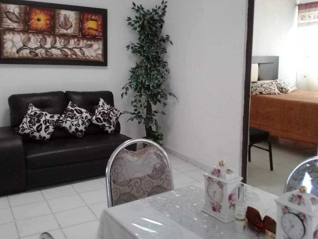 Lindo y cómodo departamento en el centro de la Cuna de la Independencia Nacional. Está perfectamente equipado y es completamente funcional. Tiene una recámara amplia; puede recibir hasta cuatro personas. Su cocina está lista para ser usada. Localizado frente a una zona comercial. Podrás acudir al cine con solo cruzar la calle. Estamos al lado de un restaurante bien conocido, y podrás disfrutar de su comida a unos pasos. Llegarás a la histórica parroquia donde inició la independencia, caminando.