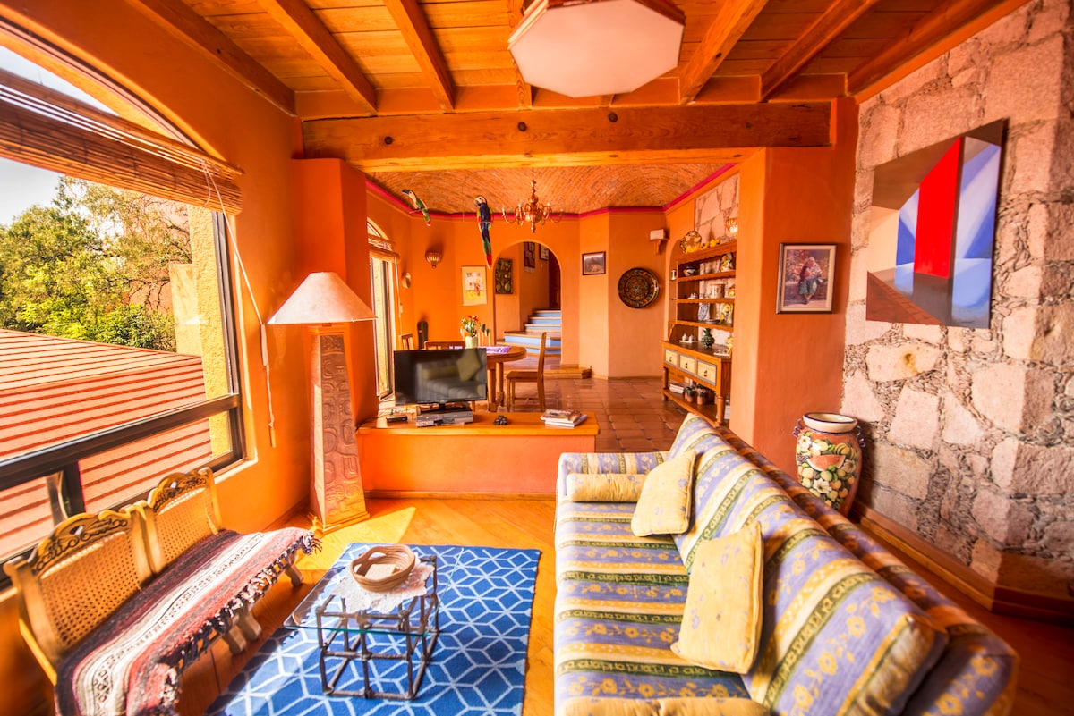 Casa Estrellita un espacio único con vista al Valle de Guanajuato, ubicado a 3 minutos caminando del Templo de Valenciana y a 12 minutos en transporte del centro de la ciudad. Iluminado, tranquilo y petfriendly, con decoraciones mexicanas, áreas verdes a sus alrededores, cancha de tenis, gym y personal las 24 hrs. ¡Una experiencia inolvidable!