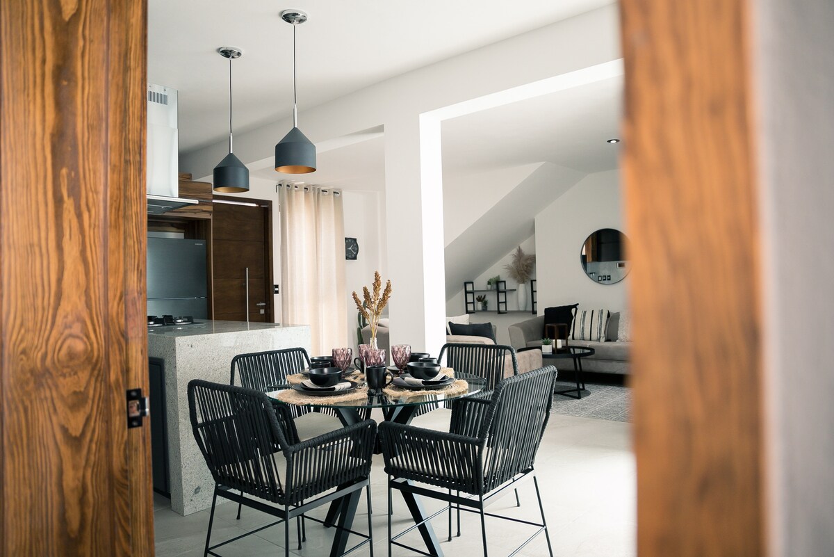 Disfruta de una experiencia con estilo en este confortable alojamiento céntrico, contamos con portón eléctrico para un rápido acceso al estacionamiento, circuito cerrado de cámaras de seguridad, internet de alta velocidad, aire acondicionado, excelente ubicación.