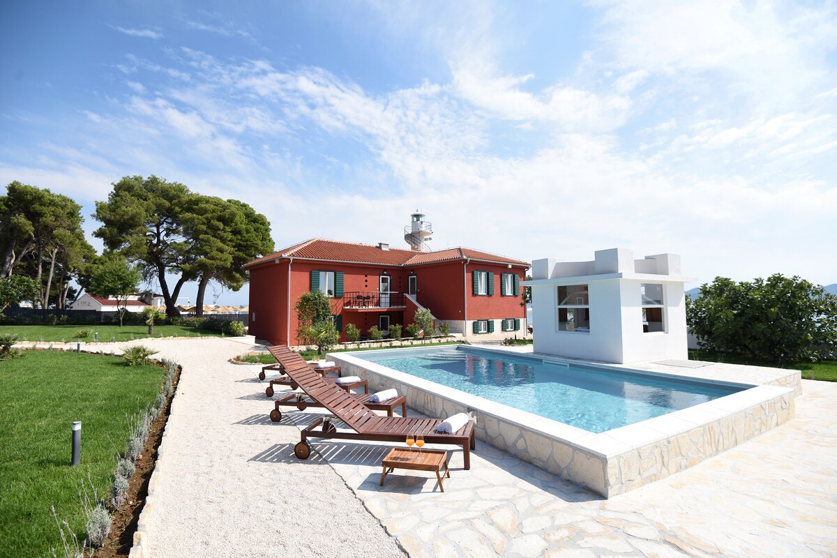 This luxury studio apartment is located next to a beautiful lighthouse by the sea. Unique location in the city of Zadar is a place from your dreams. Besides the studio apartment big enough for up to 2 persons, all our guests can enjoy breakfast next to the garden, outdoor pool, and jacuzzi area, sauna, barbecue area, private beach with sun loungers, Wi-Fi available in the whole property, etc. Book your stay now and treat yourself with the best accommodation available in the Zadar area.