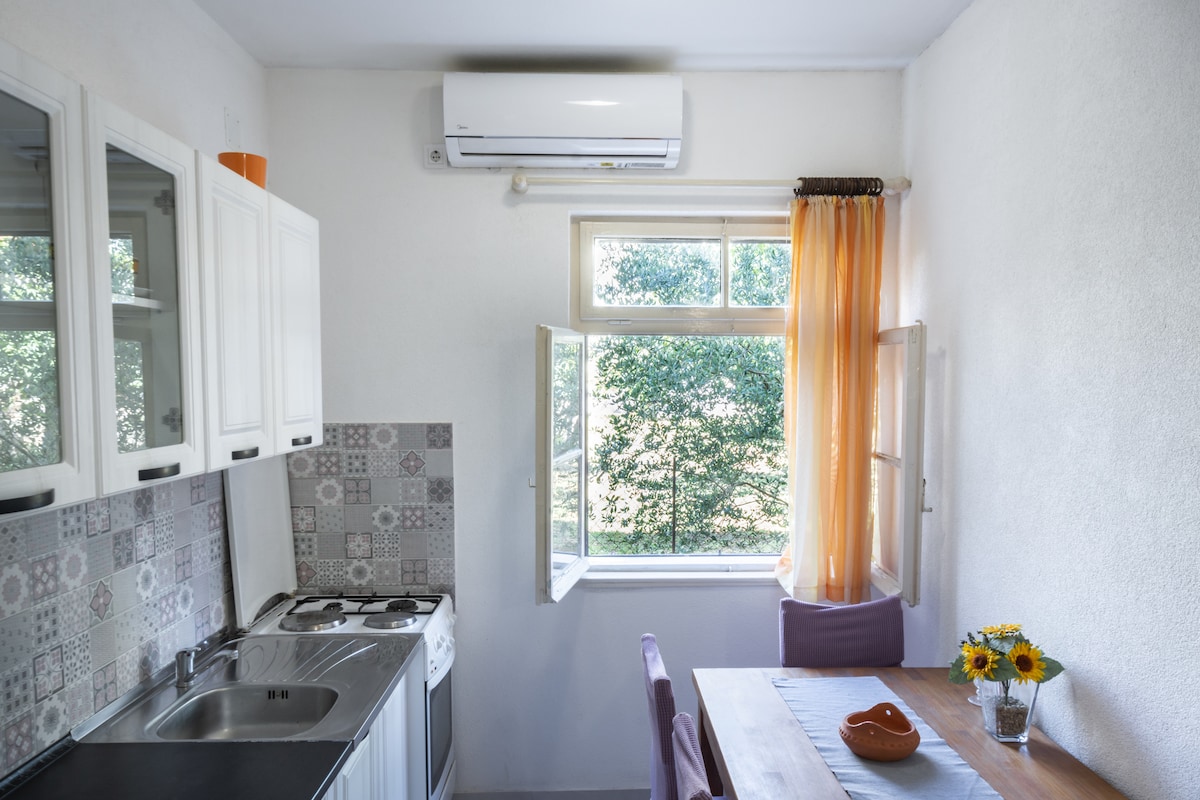 Cute studio close to public transport, the city center, and beautiful beaches. This apartment is good for couples, solo adventurers, and business travelers. Apartment is modern and really nicely decorated - feels cozy to come back to in the evening, where you can relax after an exciting day. It is situated in a quiet part of Zadar, 1.8 km from city center and 1.2 km from beach. It is on the ground floor of my private house, so I will be close if you need anything.