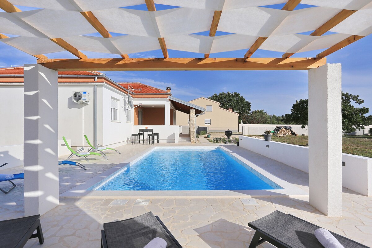 Holiday house Alirio is located in a quiet place and a beautiful natural environment with a private heated pool in the village of Poljica, next to Vrsi in Zadar County. It is only two to five kilometers away from several beautiful beaches in Vrsi, Ljubač, Nin and the beaches next to the place itself.