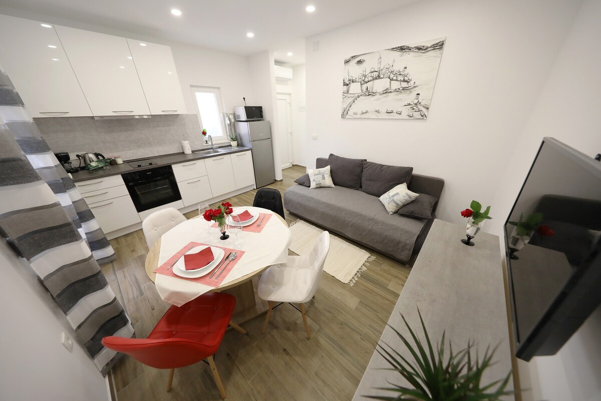 This studio apartment, located in a quiet street in the heart of old town Zadar will be the perfect home for you. It is located next shops and bars within walking distance of most scenic spots. While staying in a fully equipped and tastefully decorated apartment you will be completely immersed in the atmosphere of this landmark neighborhood!