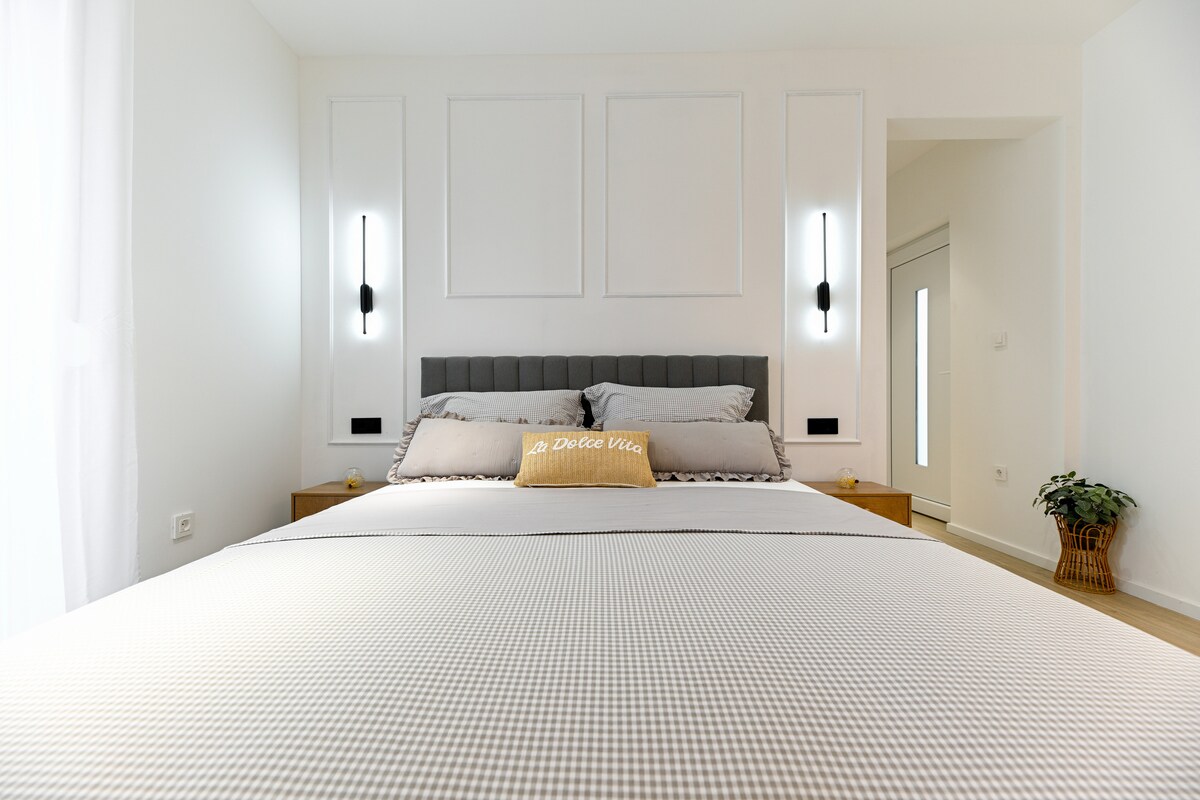 Luxury apartment Niko offers a sophisticated and modern living space with carefully selected details. The spacious living room is connected to an elegant kitchen equipped with high-quality appliances, providing a perfect ambiance for relaxation. From the living room, there is access to a large balcony, ideal for morning coffee with a view of the city. The apartment is located in a new building with an elevator and also has its own garage space. The city center, and beaches is 10 minutes away.