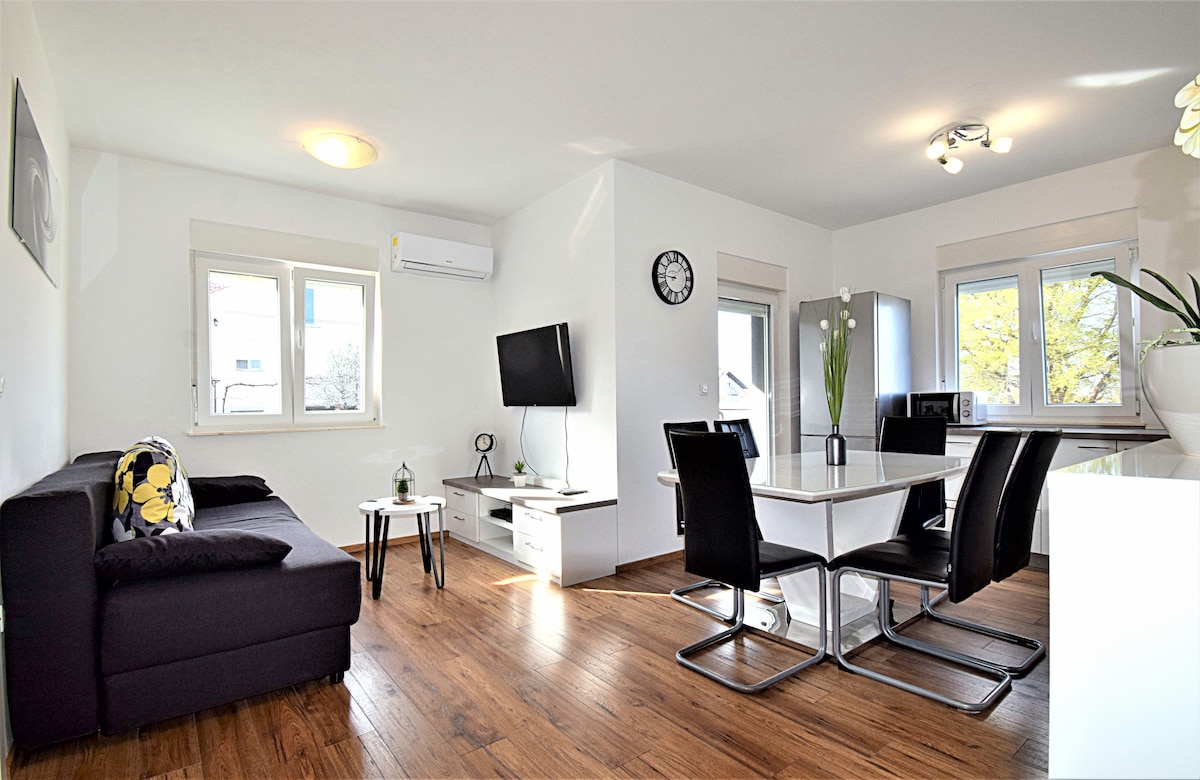 Enjoy the beautiful sea view with a glass of good Croatian wine in a family and friendly environment. Ideal for romantic walks by the sea . The facility is located in a quiet family village Diklo. Near the house there is a church, the distance from the beach and promenade is around 100 m as well as from the nearby caffe bar, grocery store,restaurant and children playground. The city center is only 6 km away, the nearest airport is Zadar Airport, 16 km away from the apartment.