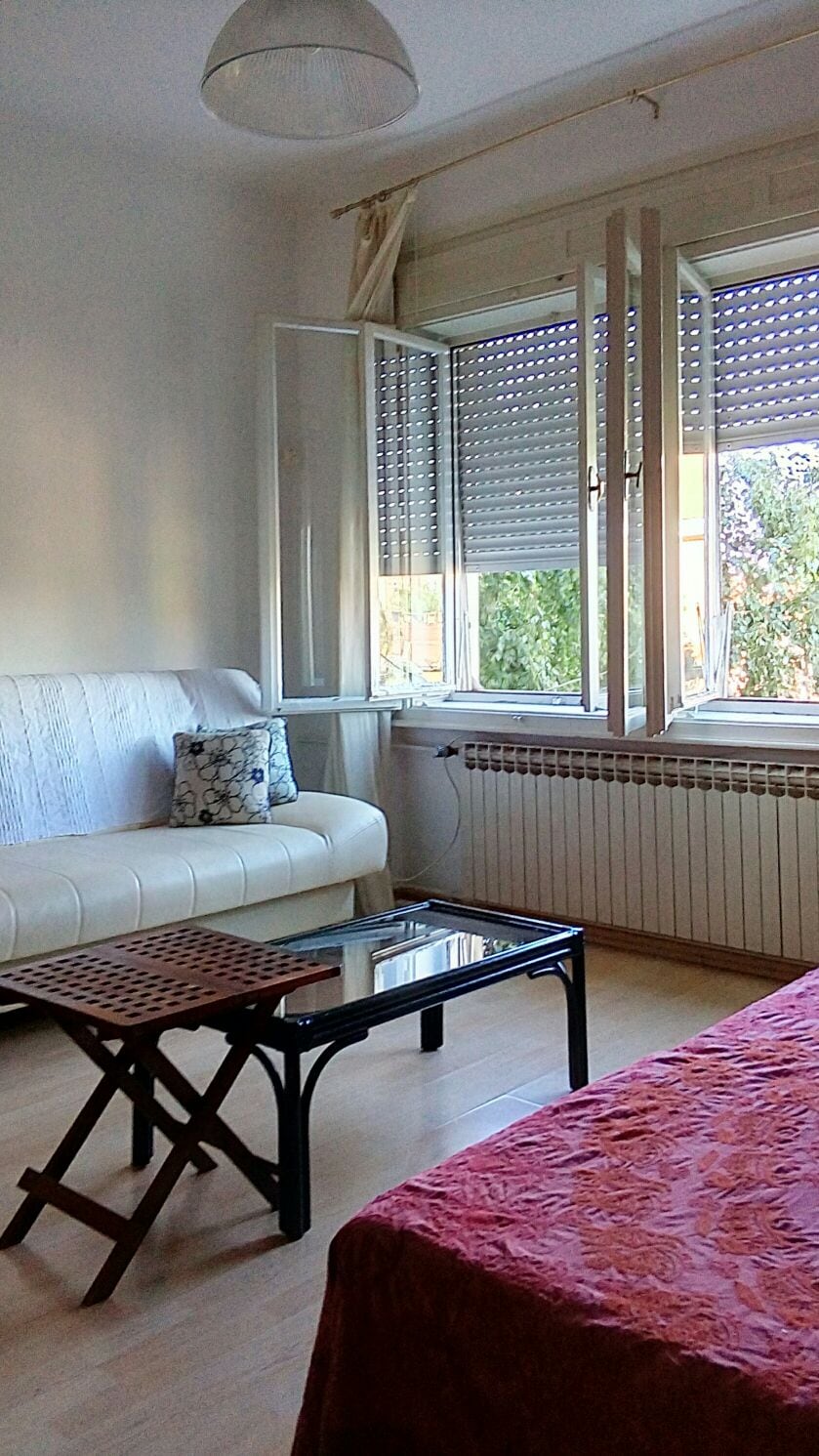 1 bedroom flat, living-room/bedroom with two pull-out beds, a kitchen with dining-room, bathroom. On Kvaternikov Trg. 15 min from the centre (1.5 km). The main bus station 1.5 km, train station 2km away. Bus from and to the airport around the corner.