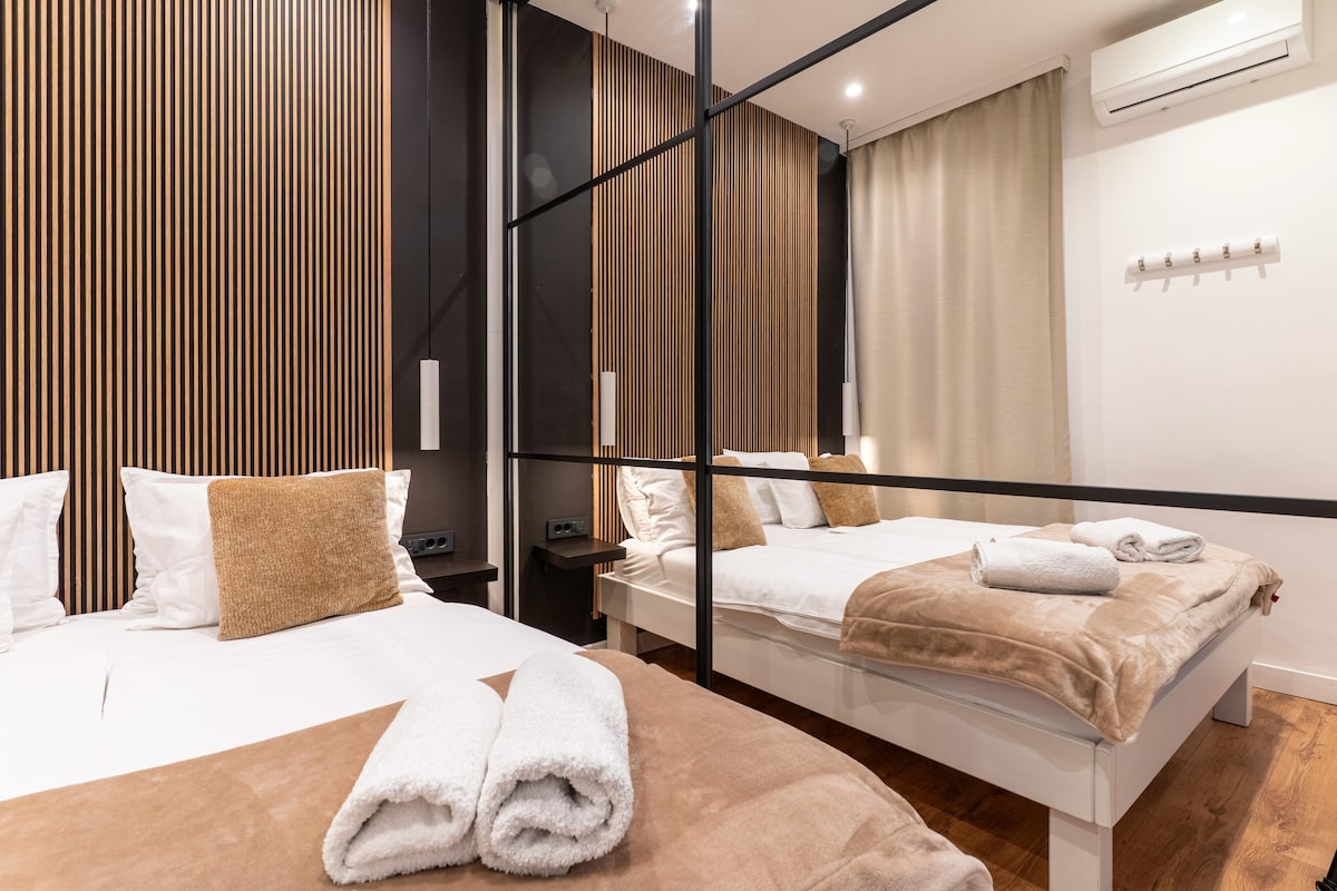 Experience Zagreb's heart from our stylish 2-bedroom apartment on Masarykova ulica. Tastefully decorated, it features a luxurious king-sized bed, two comfortable singles, and a versatile sofa bed for your group's perfect sleep setup. The apartment is located in a pedestrian zone, and the parking is available (and free) in a nearby garage, so your car is safe while you explore the pedestrian zone, historic landmarks, museums, and Zagreb's vibrant culinary scene.