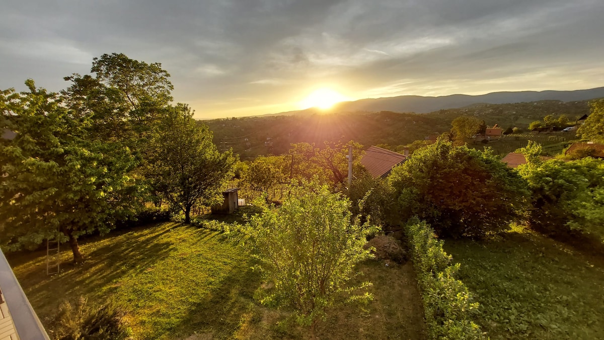 Kuća za odmor u Zagrebu na obroncima Medvednice, daleko od gradske vreve. Zaboravite na sve svoje brige u ovom prostranom i opuštajućem smještaju s prekrasnim pogledom i jedinstvenim zalascima sunca. Opustite se na terasi uz roštilj ili odmorite na jednoj od terasa uz dobru knjigu i čašu vina. Napunite baterije uživajući u prirodi koja vas okružuje. Kuća ima vlastiti parking, a kućni ljubimci su dobrodošli.