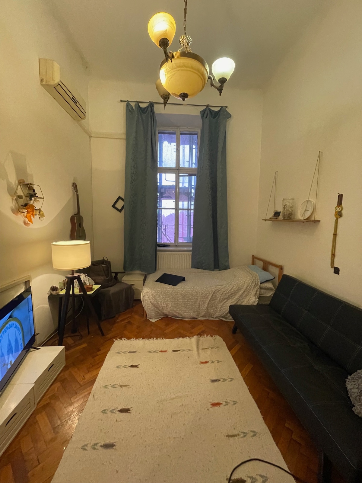 Centar grada , ali jako mirno!!!! Posebnost stana da je smješten u dvorišnoj zgradi okruženoj parkom , što je doista rijetkost. Sva buka grada je utišana! samo cvrkut ptica. Prostranost i svijetlost stanu daju i veliki prozori i visoki plafoni! Galerijski krevet ima normalne stepenice , nisu strme, i nećete se trebati sagibati . Ispod galerijskog kreveta nalazi se walk- in garderoba. Kuhinja je mala, ali potpuno opremljena .
