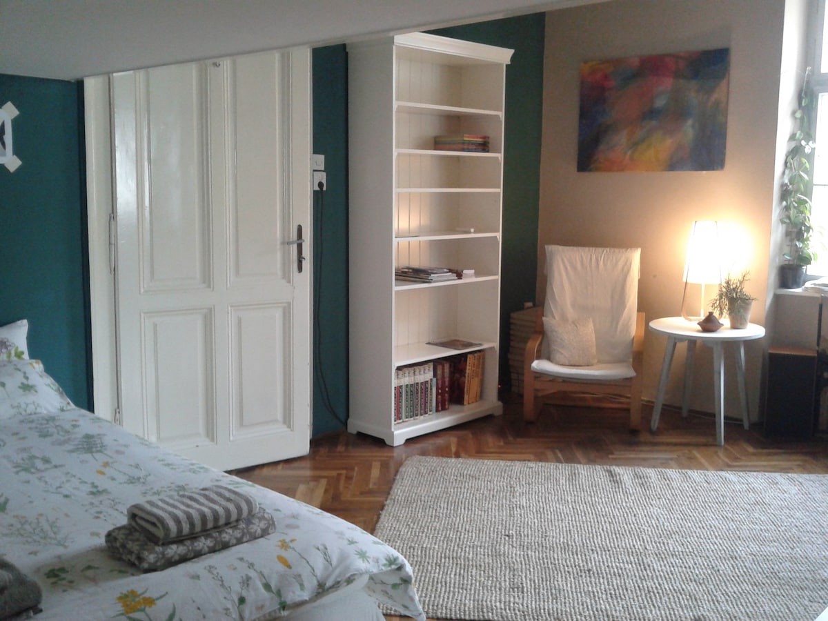 Kick back and relax in this calm, stylish space. The aparment is newly renovated and completely refurnished. We thought of every single detail in creating it. As one guest described “all the comfort of a home with conveniences of a hotel”. The bedroom can be completely darkened. An extra comfortable queen bed with white satin bedlinen promises good rest. A modern small bathroom has a walk in shower. Heated floor. All towels in white cotton for upscale hygiene standard. Cozy living room. Enjoy😉