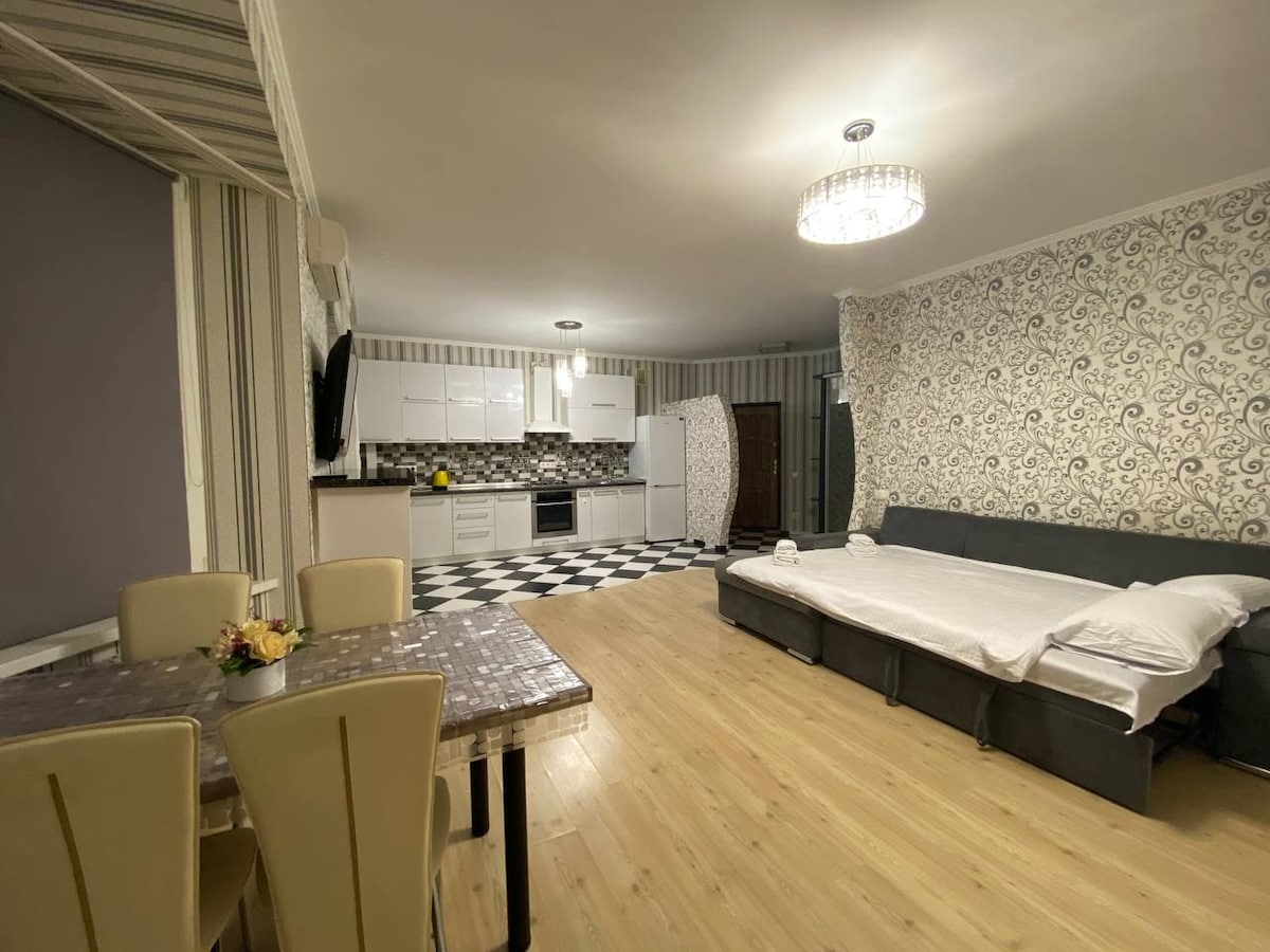Enjoy a stylish experience at this centrally-located place. A warm cozy apartment located in the heart of Mukachevo. Heated flooring in entry and bathroom. Full kitchen, pullout couch and a very comfortable bed. Upgraded Wi-Fi and a washing machine. Air conditioner for the summer. Secure daily parking located directly behind the apartment.