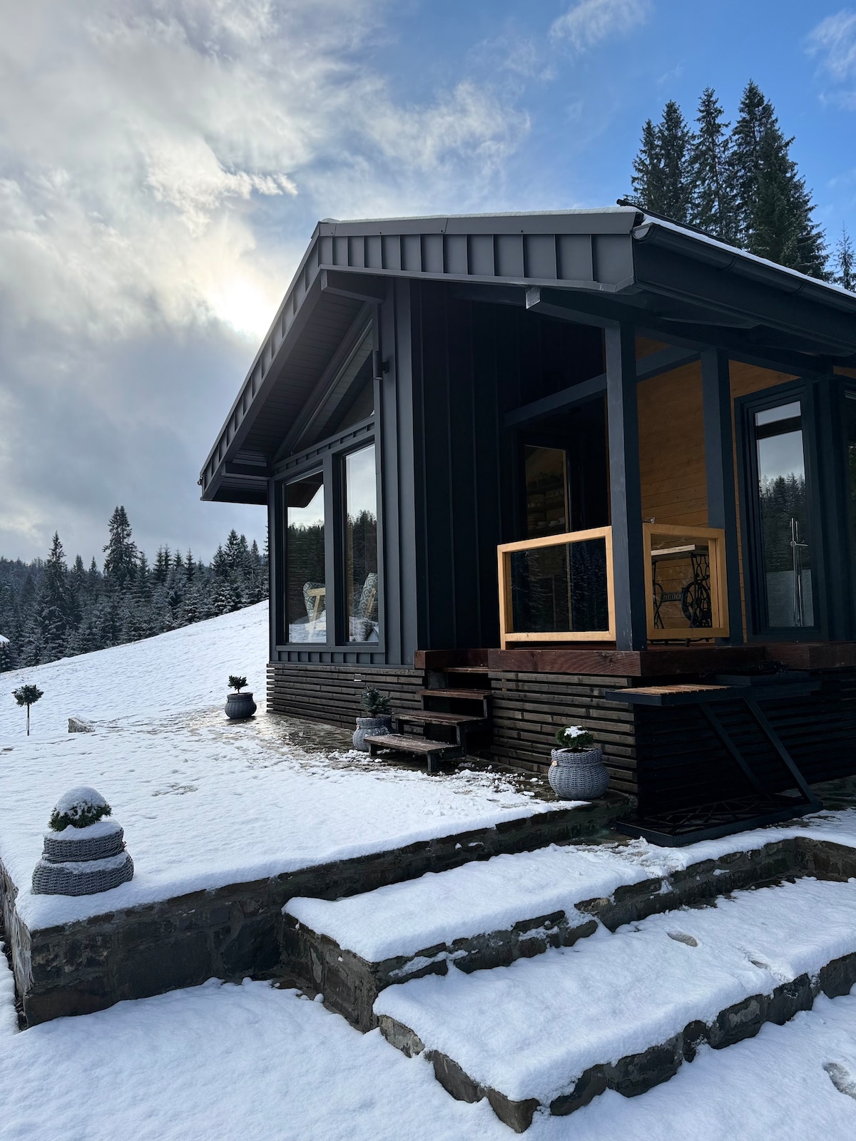 Ми - окремий комфортабельний будинок у стилі барнхауз, зведений серед гір у лісовому масиві Карпат. Ми - це історія про спокій, затишок, комфорт…. про відновлення та наповнення! Будинок може комфортно розмістити до 6 осіб. У будинку є все для комфортного перебування. У вартість оренди будинку включена також можливість користування відкритою верандою та окремою альтанкою з мангалом (букові дрова та необхідний інвентар додаємо). У гостей є змога замовити славнозвісний оздоровчий карпатський чан.