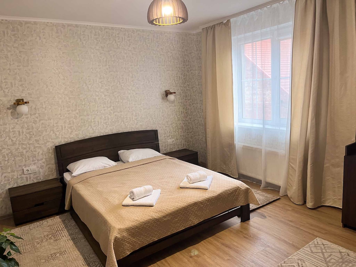 Стильная 2-комнатная квартира с дизайнерским ремонтом,является частью нового комплекса который состоит из четырех апартаментов.Квартира находится на 1 этаже,двухэтажного дома построенного в 2019 году. Расположена в респектабельном тихом районе, в 10 минутах ходьбы от исторического центра города,улиц Корятовича и Корзо. Все наши квартиры укомплектованы всем необходимым для вашего комфортного проживания. Даже во время рабочих поездок мелкие детали создадут домашнюю атмосферу тепла и уюта.