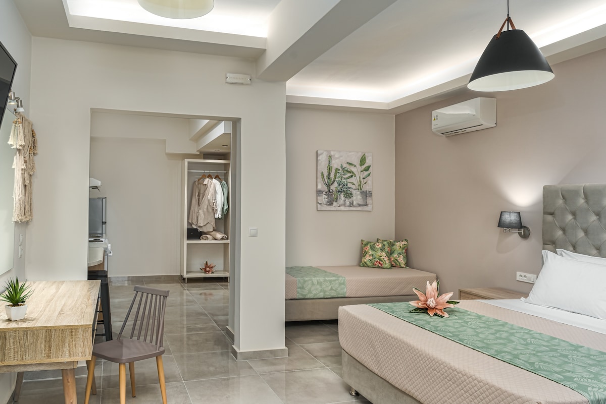 Melina's Suite, is a stylish and cozy suite situated in the heart of Zakynthos town! Centrally located, it offers easy access to the city's vibrant attractions and amenities. The suite feature one cozy bedroom, a well-appointed bathroom and an open plan kitchen - living room. Highlight of the suite its the inviting balcony, where the guests can unwind and soak. Up to 3 guests, provides a perfect haven for a memorable stay in Zakynthos.