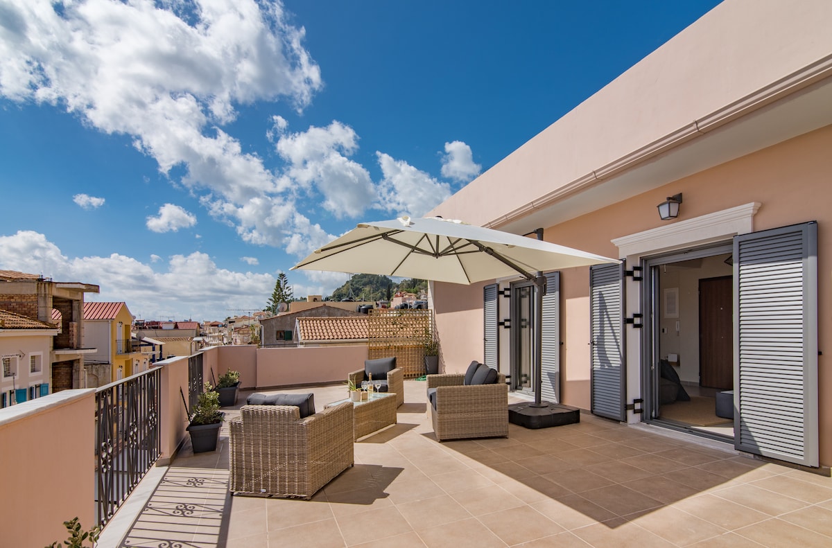 The Nodaros Penthouse is situated literally, in the heart of zante town, at the central pedestrian zone, next to Saint Markos Square. The flat has a unique view of zante town centre. This is ideal for couples , families and friends. The guests of the flat will be exremely close to all sights of the town, such as, shops, bars, restaurants, museums, various services. The krioneri beach is only 300 metres
