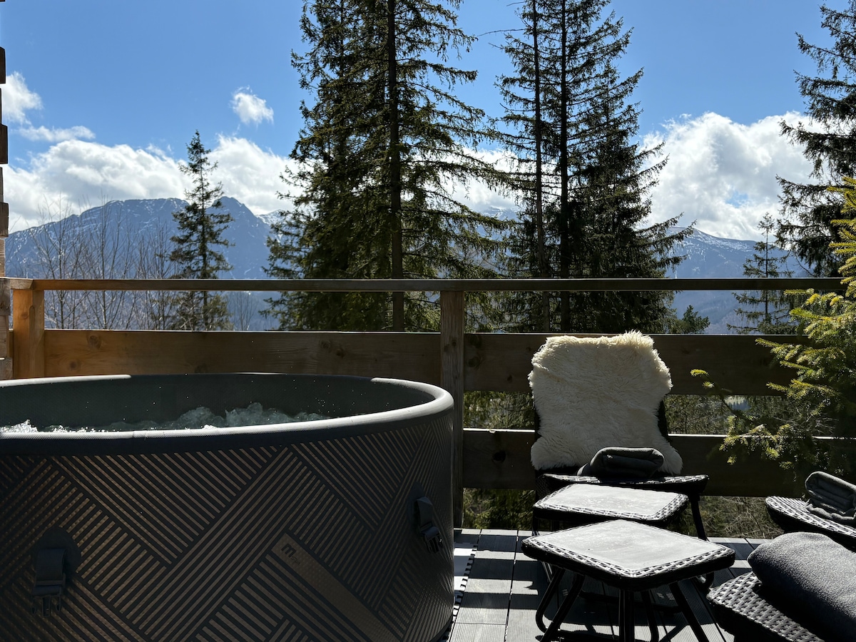 带桑拿,按摩浴缸和花园浴缸的迷人山间小屋