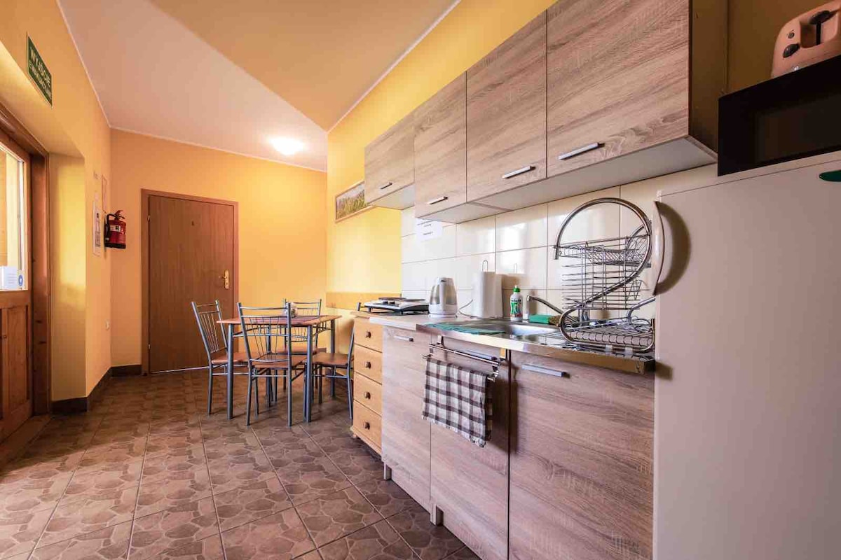 Na parterze budynku znajduje się nasz rodziny sklep, w którym rano można kupić świeże pieczywo na śniadanie :) Śniadanie można przygotować w kuchni w której znajduje się wszystko, co potrzebne! Miejsce, które wynajmujemy znajduje się w budynku obok nas. Jest do niego niezależne wejście. W całym budynku mieści się łącznie 5 pokoi. Jesteśmy do dyspozycji o każdej porze. Dla gości - bezpłatny parking oraz piękny ogród w którym można odpocząć :)