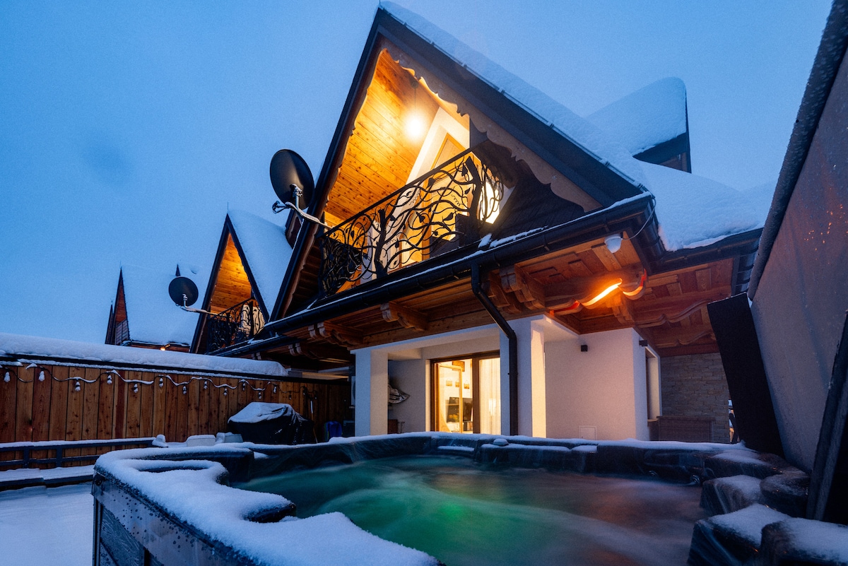 塔特拉山脉景观木屋,配备按摩浴缸